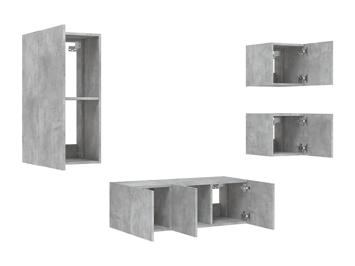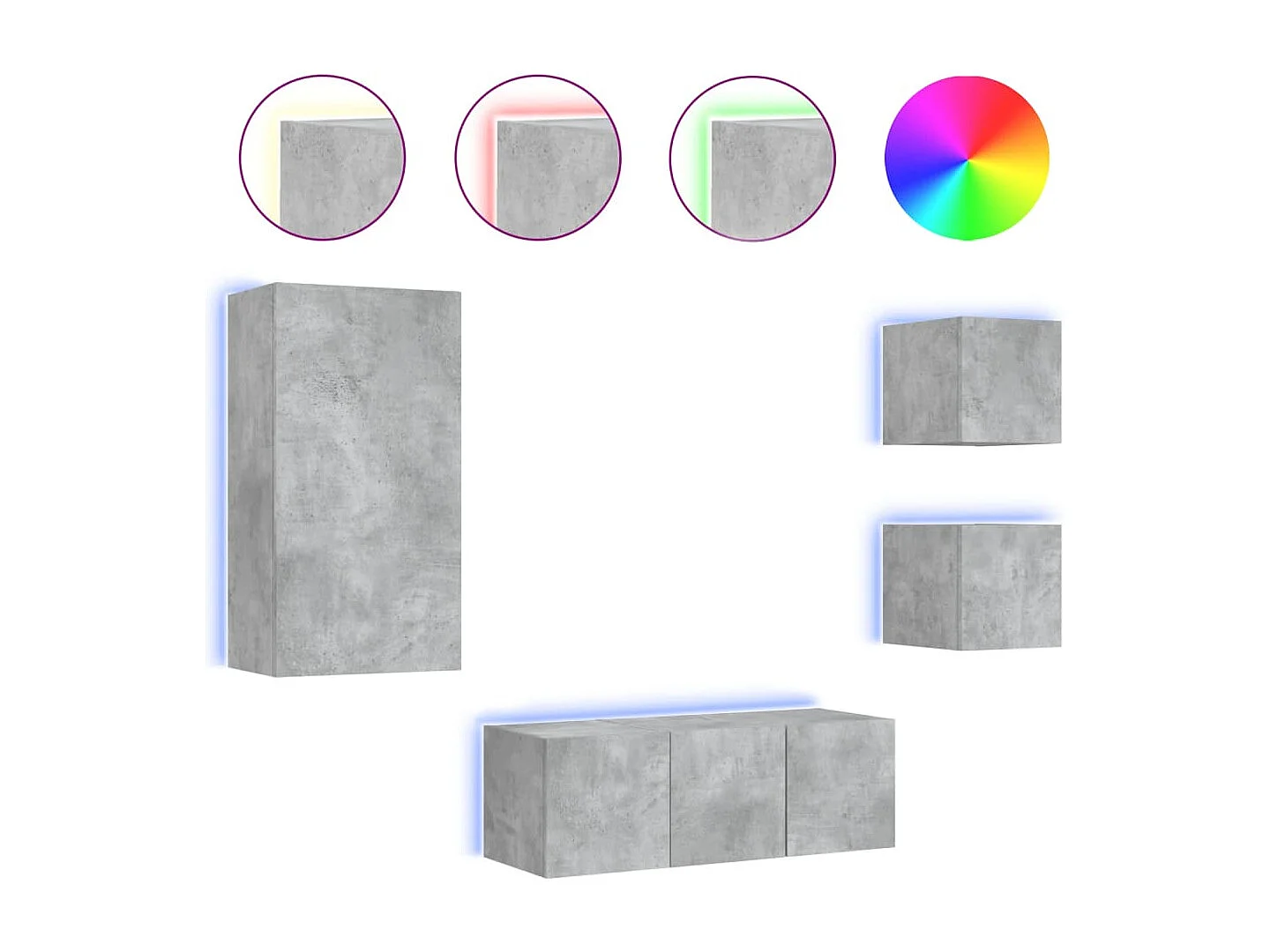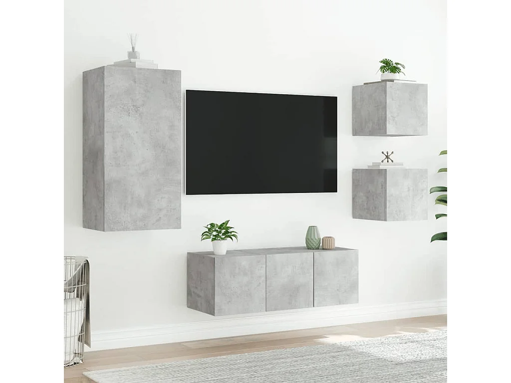 Sart-Saint-Laurent Unités murales TV avec LED 5 pcs gris béton bois d'ingénierie