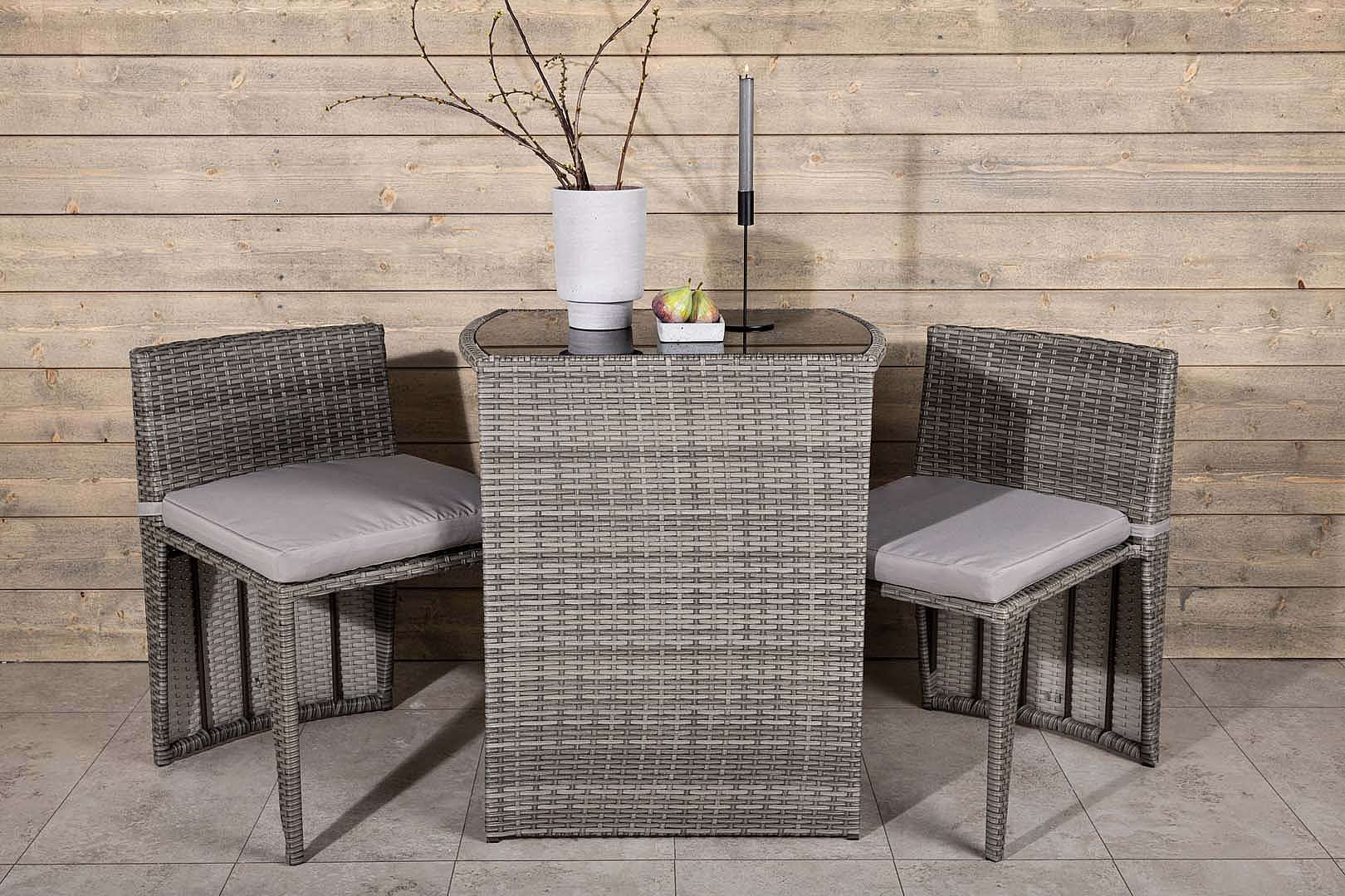 Holmbeck set de jardin table 90x200cm naturel, 6 chaises Peking gris foncé.