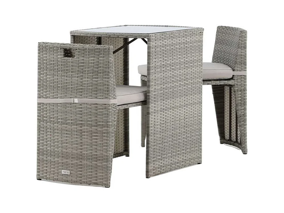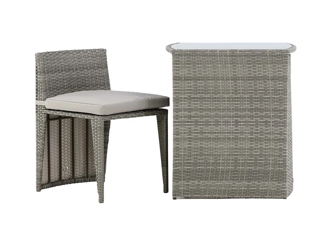 Ensemble de bistro 3 pcs avec coussins Rotin PE Gris