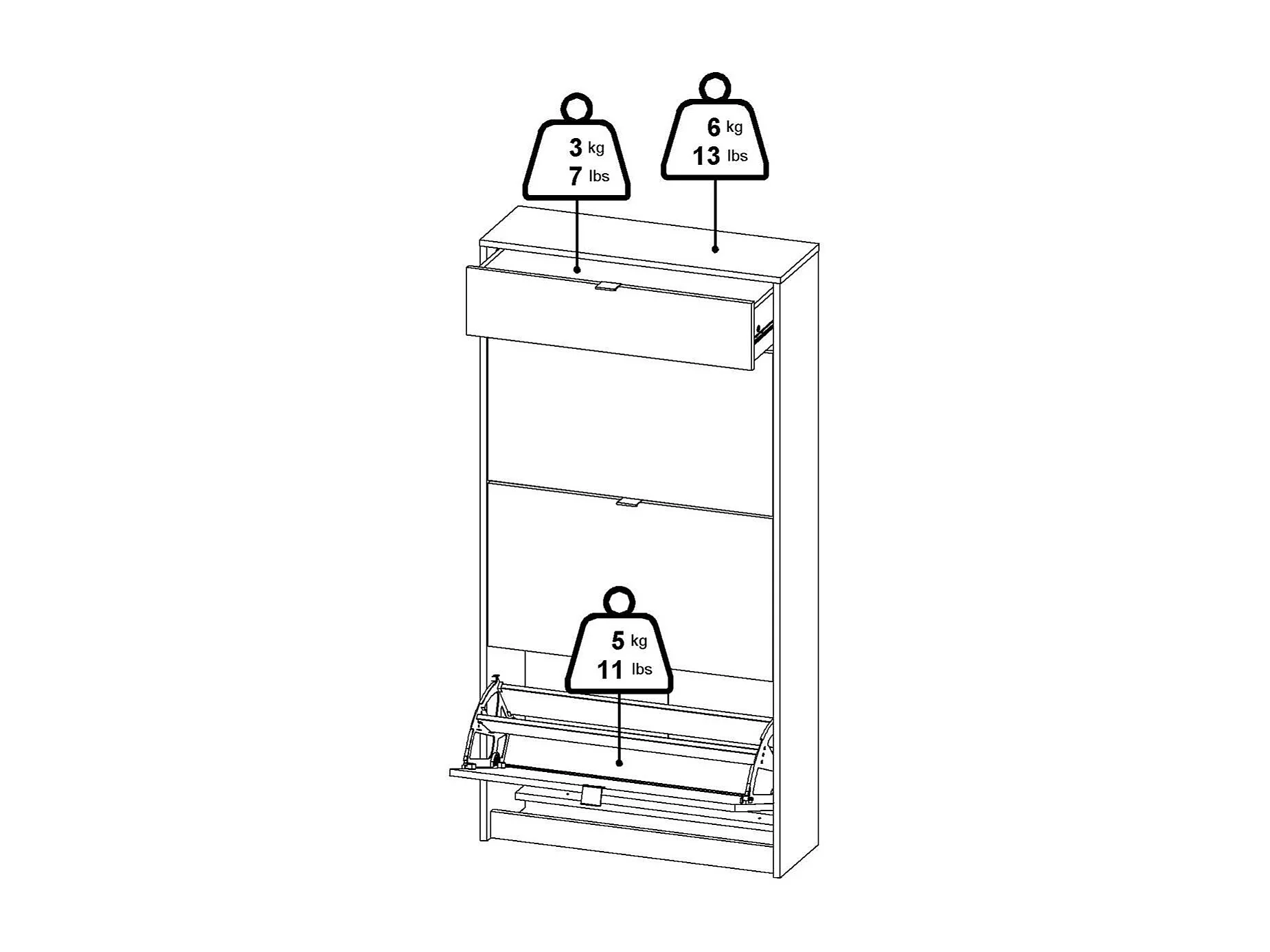 Meuble à chaussures Theophile, un tiroir, 24.05x70.3x101.25h cm Noir, rangement chaussures