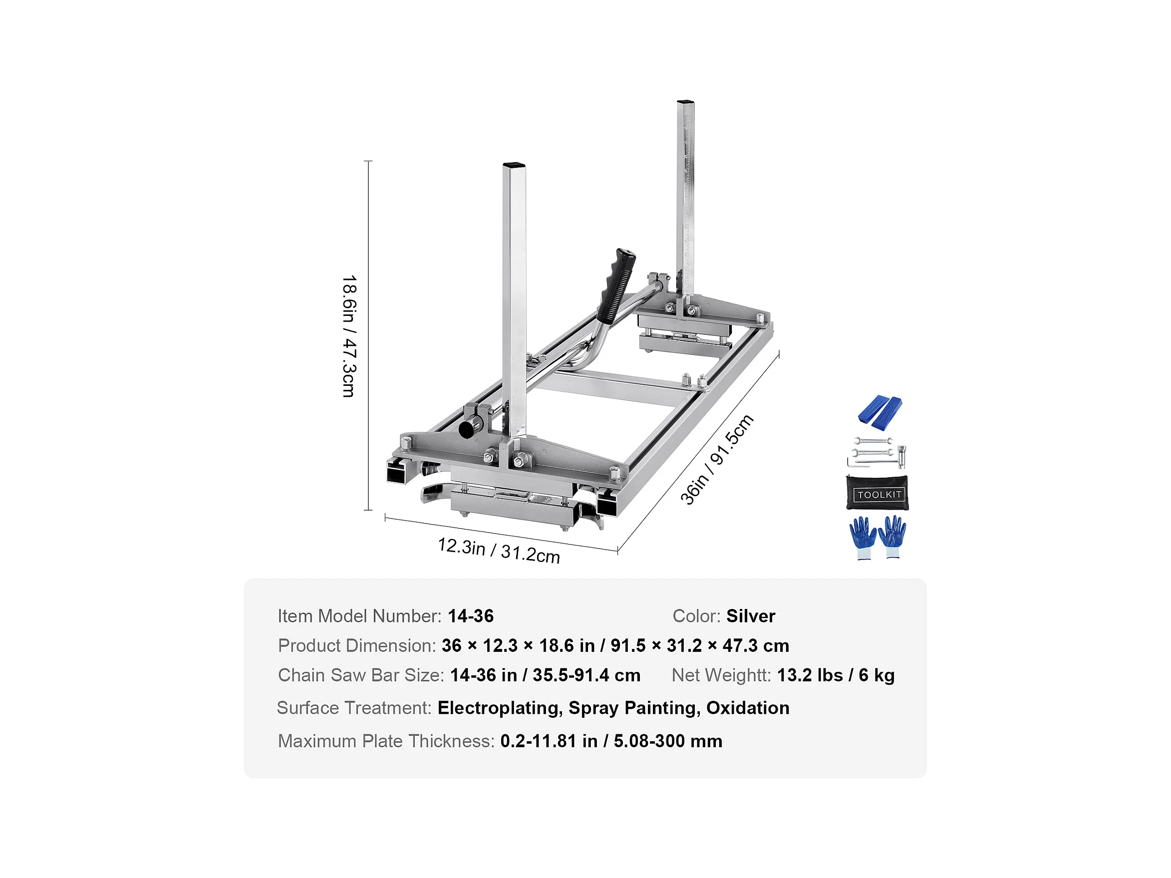 Scie à Chaîne Portable SucceBuy, barre de Guidage 35.6 -91.4cm, épaisseur de coupe 5.1-30cm