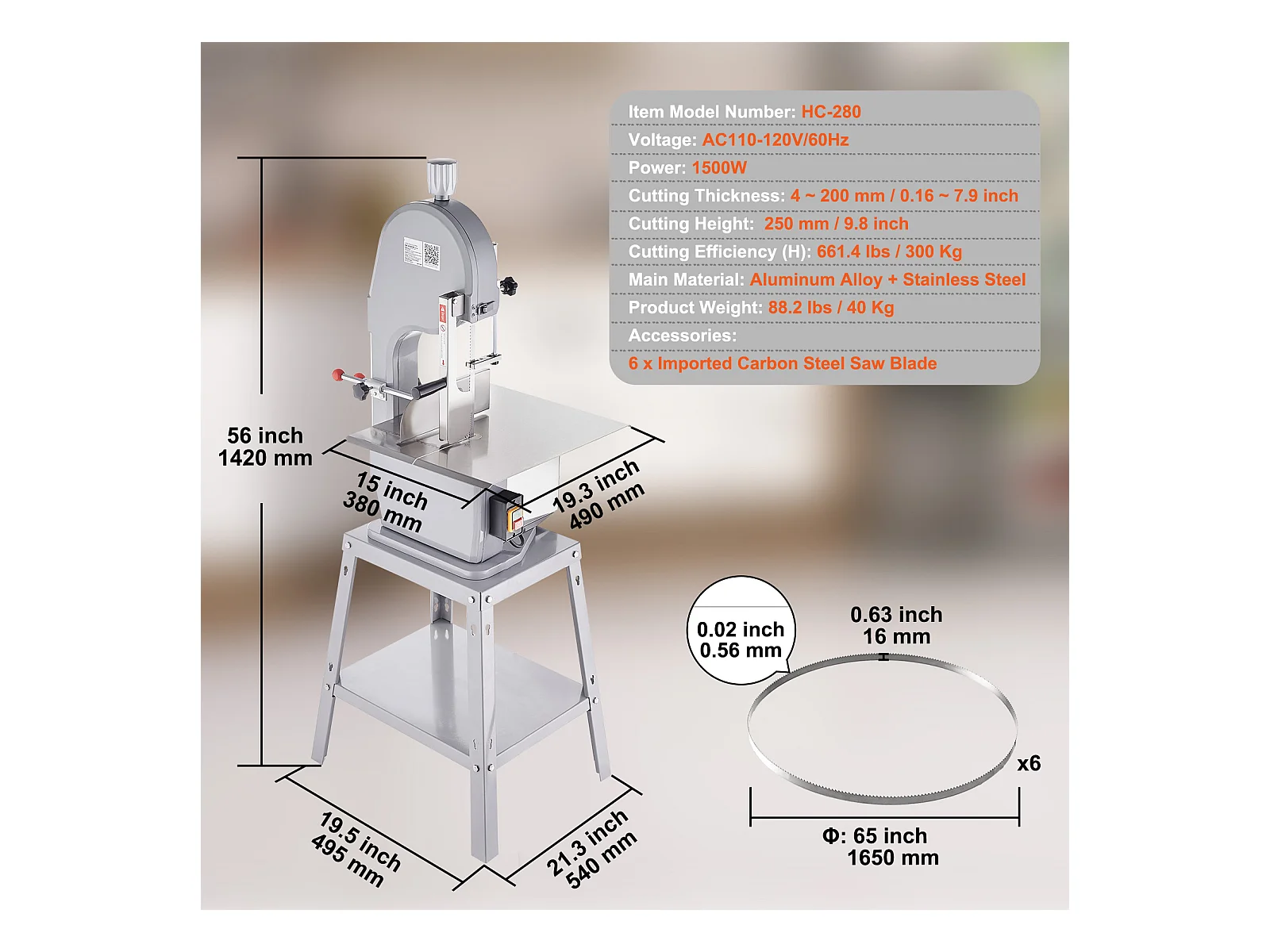 Scie à Ruban Commerciale pour Viande SucceBuy 1500 W, Machine à Scier les Os en Acier Inoxydable, pour la Viande et les Os Congelés