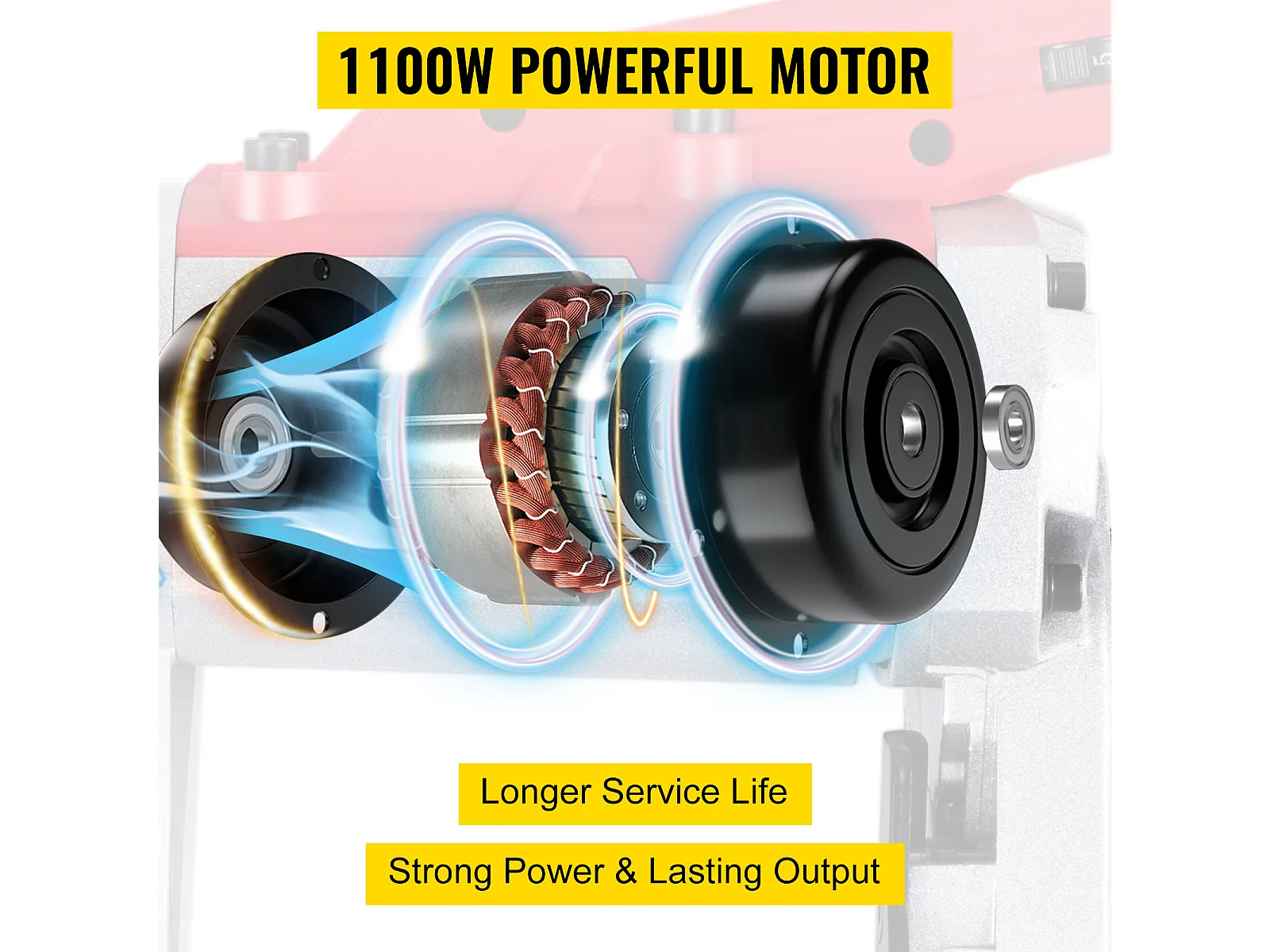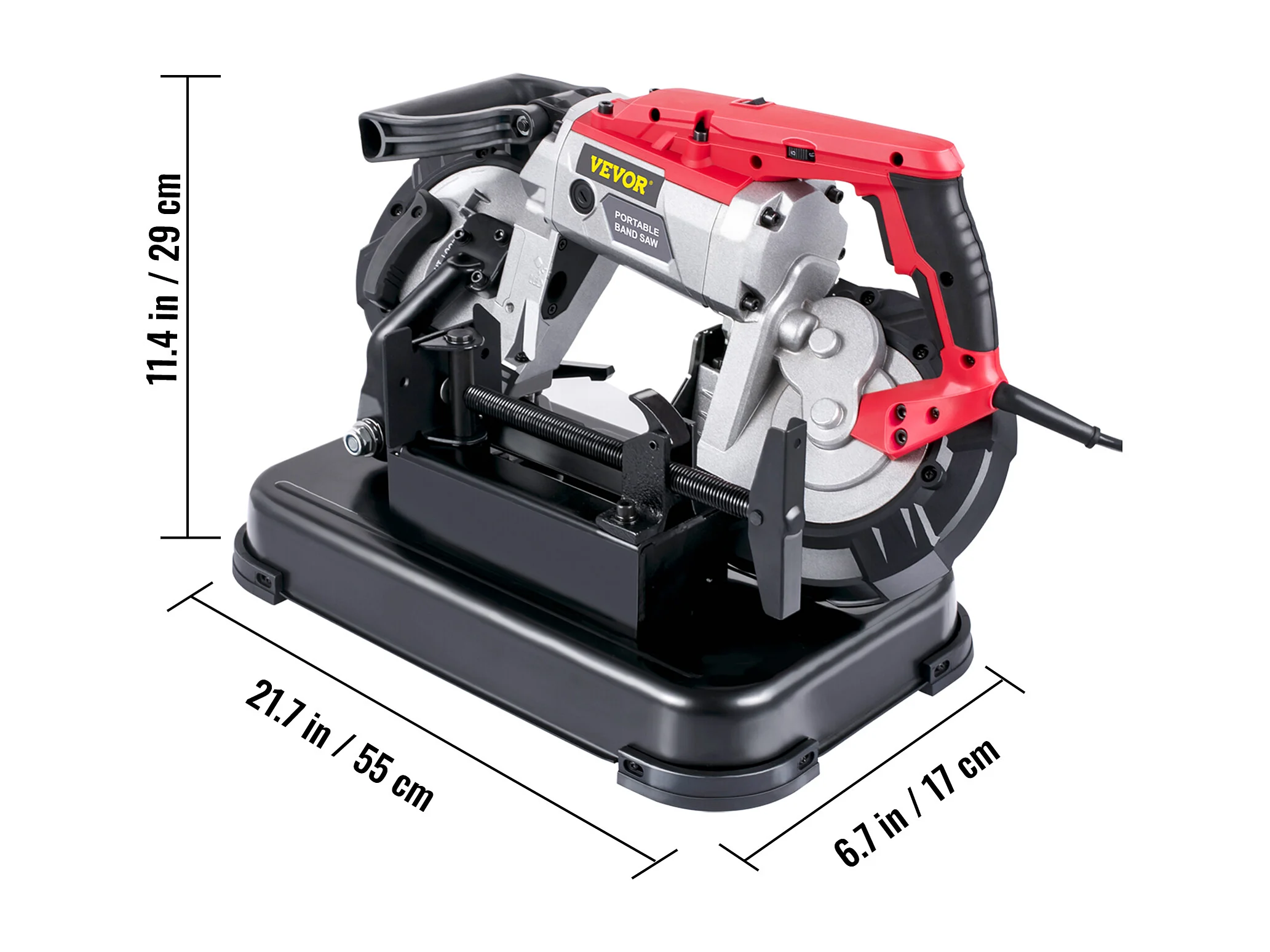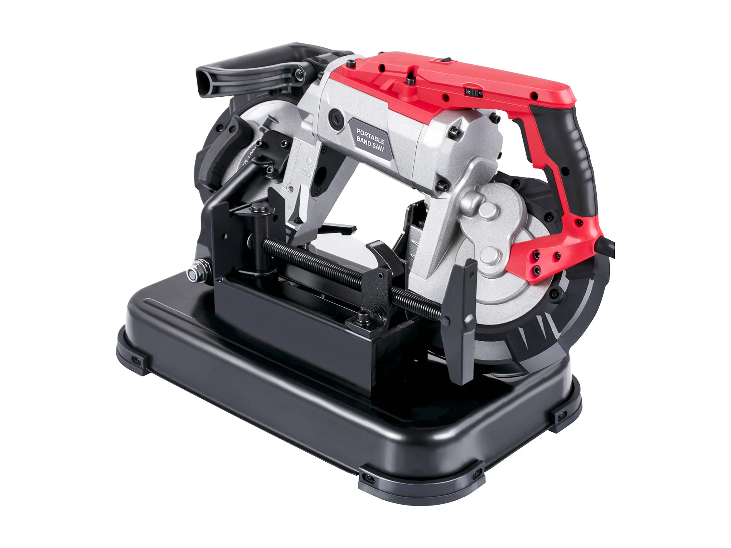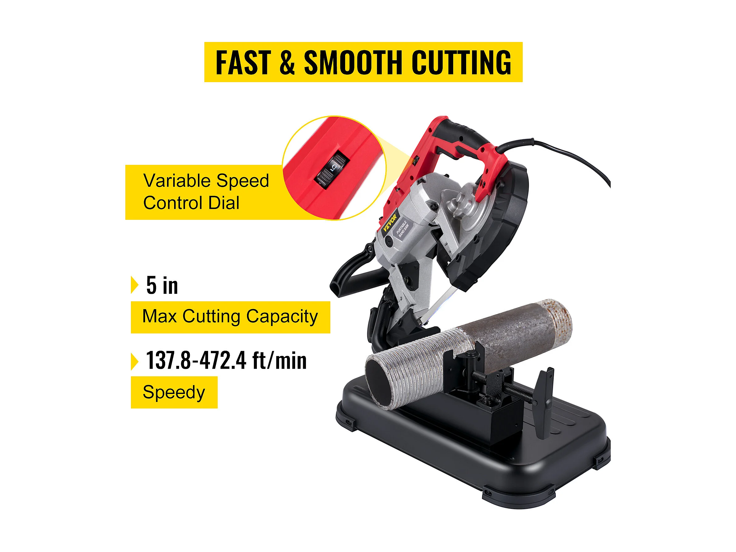 Scie à Ruban SucceBuy Portable à Coupe Profonde 12,7 Cm, Scie à Ruban sans Fil Électrique 1100W 42-144 M/Min Coupe à 45°-90° avec Lampe LED
