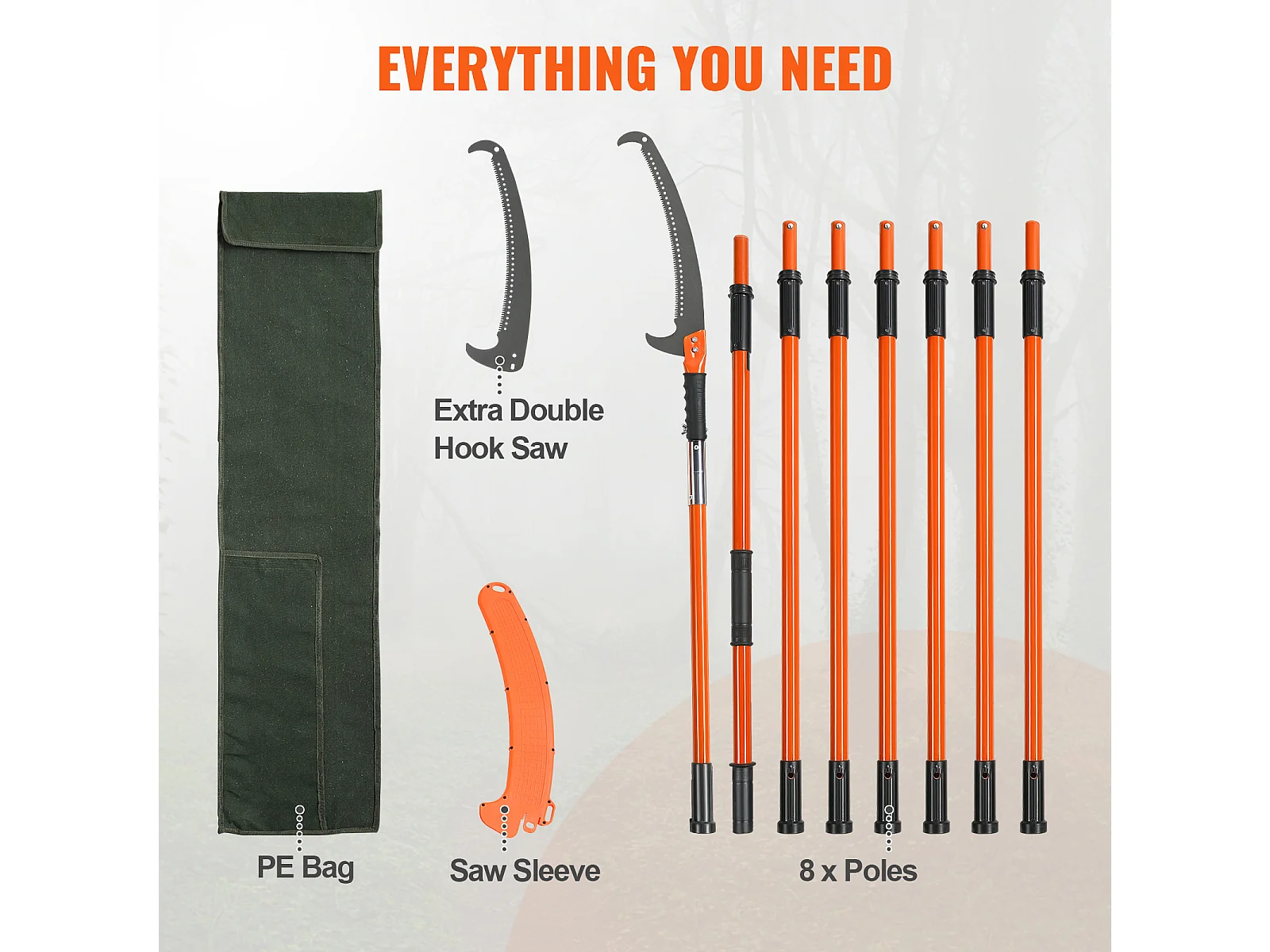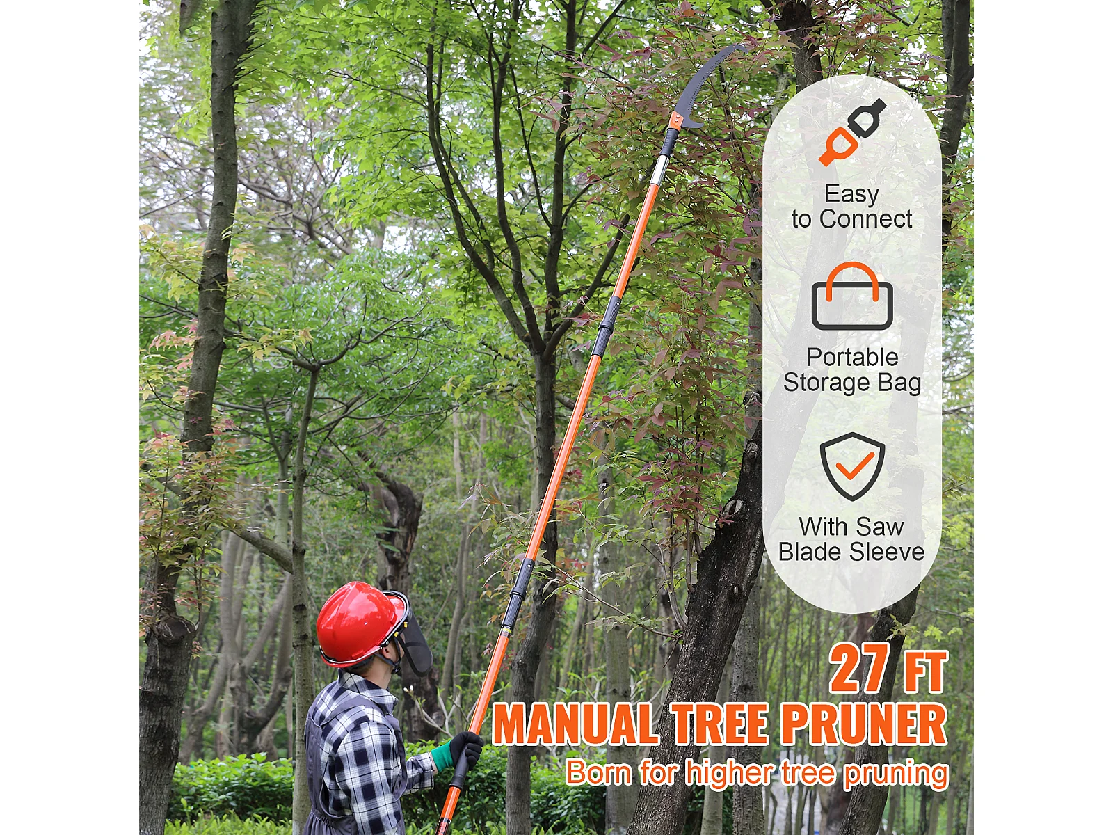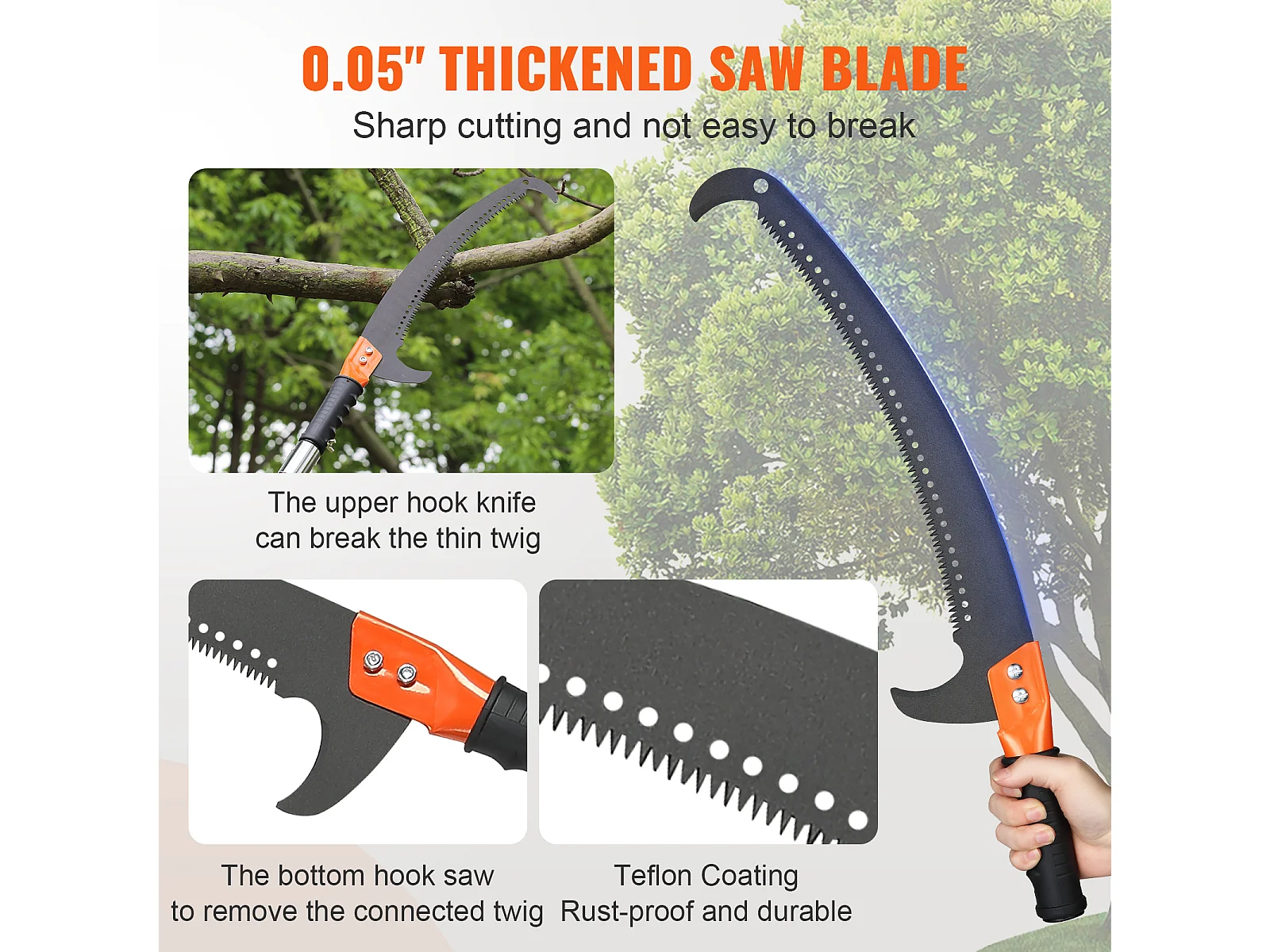 Scie Manuelle pour Perche SucceBuy, Élagueur Extensible, 7.3-27ft, Perche en Fibre de Verre, Couteau à Crochet