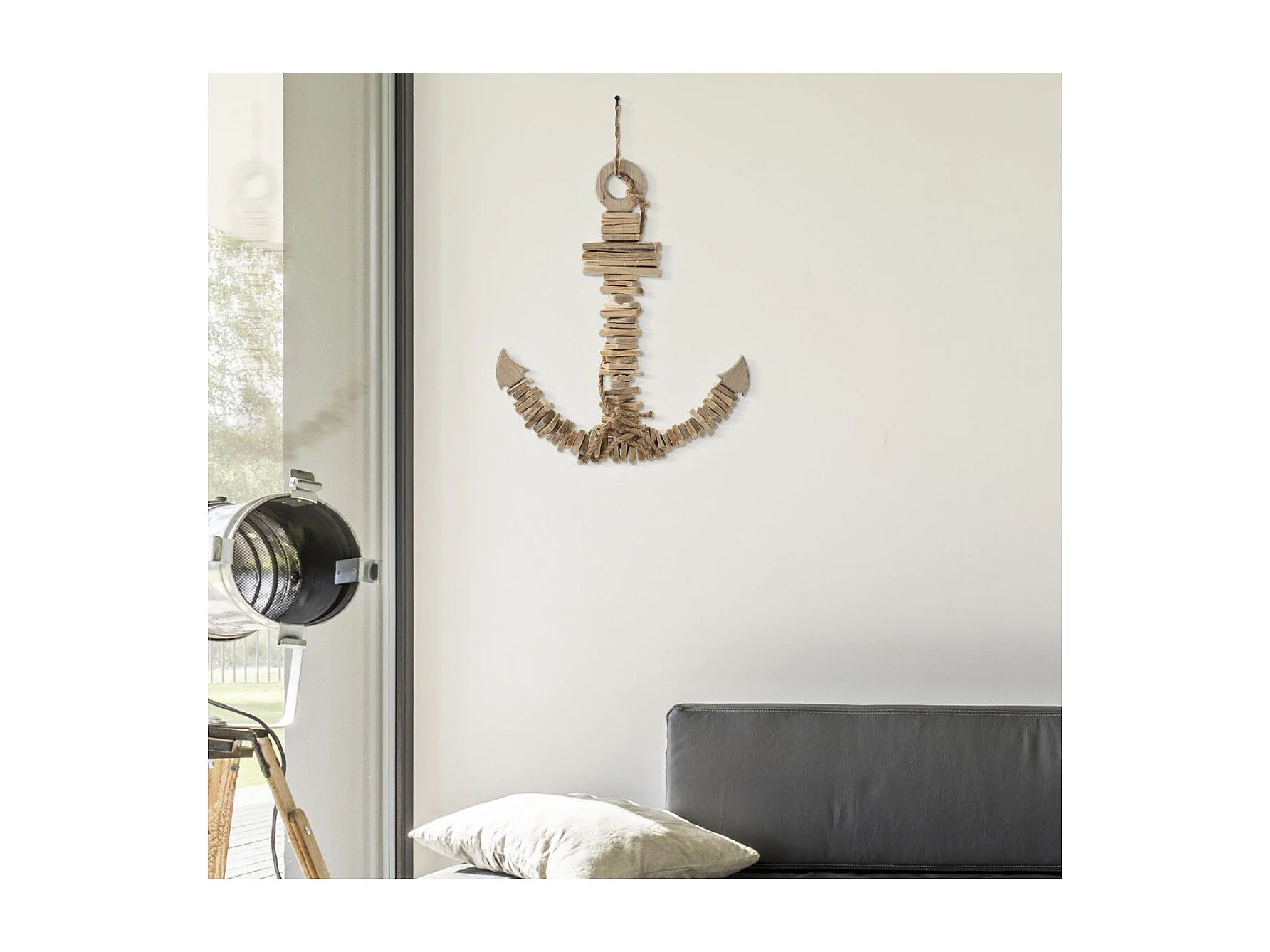 Décoration Murale en Bois à Suspendre "Ancre" 46cm Naturel