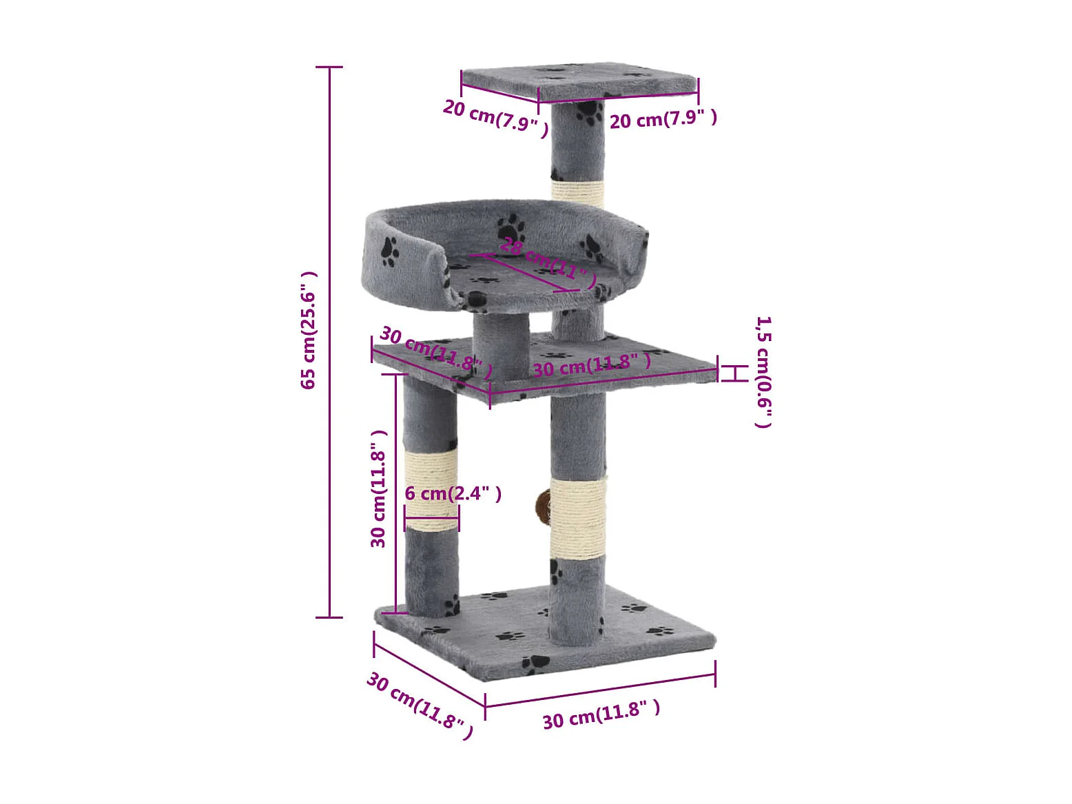 Sebastiano Arbre à chat et griffoir Sisal 65 cm Empreintes de pattes Gris