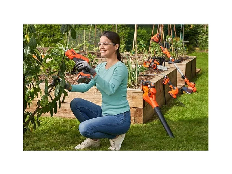 Sécateur BLACK+DECKER - Batterie Lithium 18V 2Ah - Capacité de coupe 25mm - Gâchette de sécurité