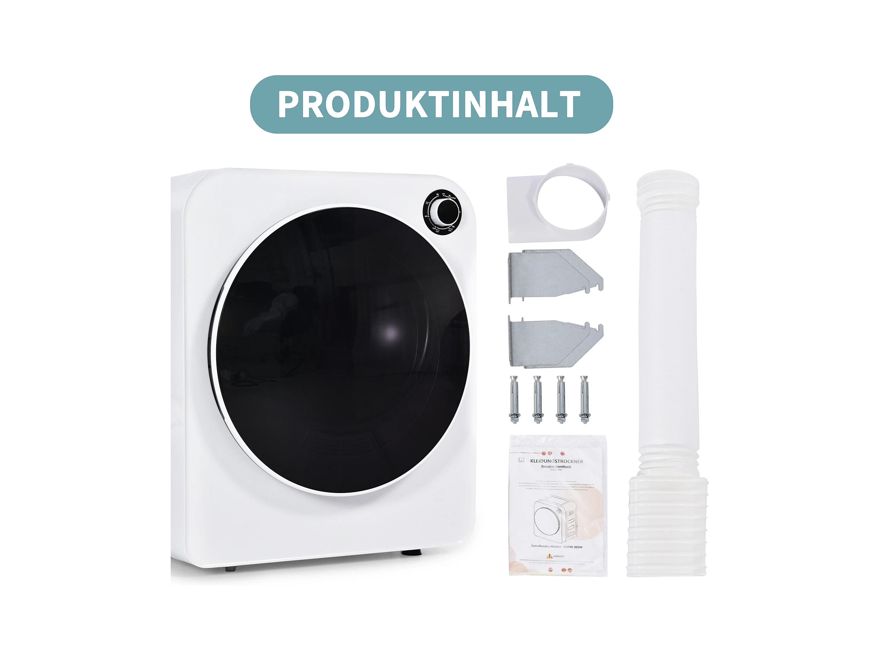 Sèche-linge hublot 2,5kg - chauffage en céramique PTC - avec protection de surchauffe - max 65 °C - accrochable au mur
