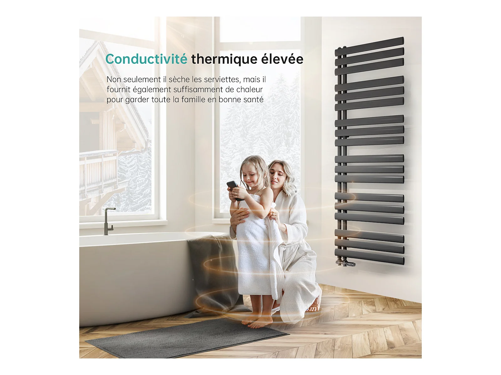 Sèche-serviette eau chaude EMKE raccord latéral radiateur sèche-serviettes anthracite 174 × 60 cm 408 watts