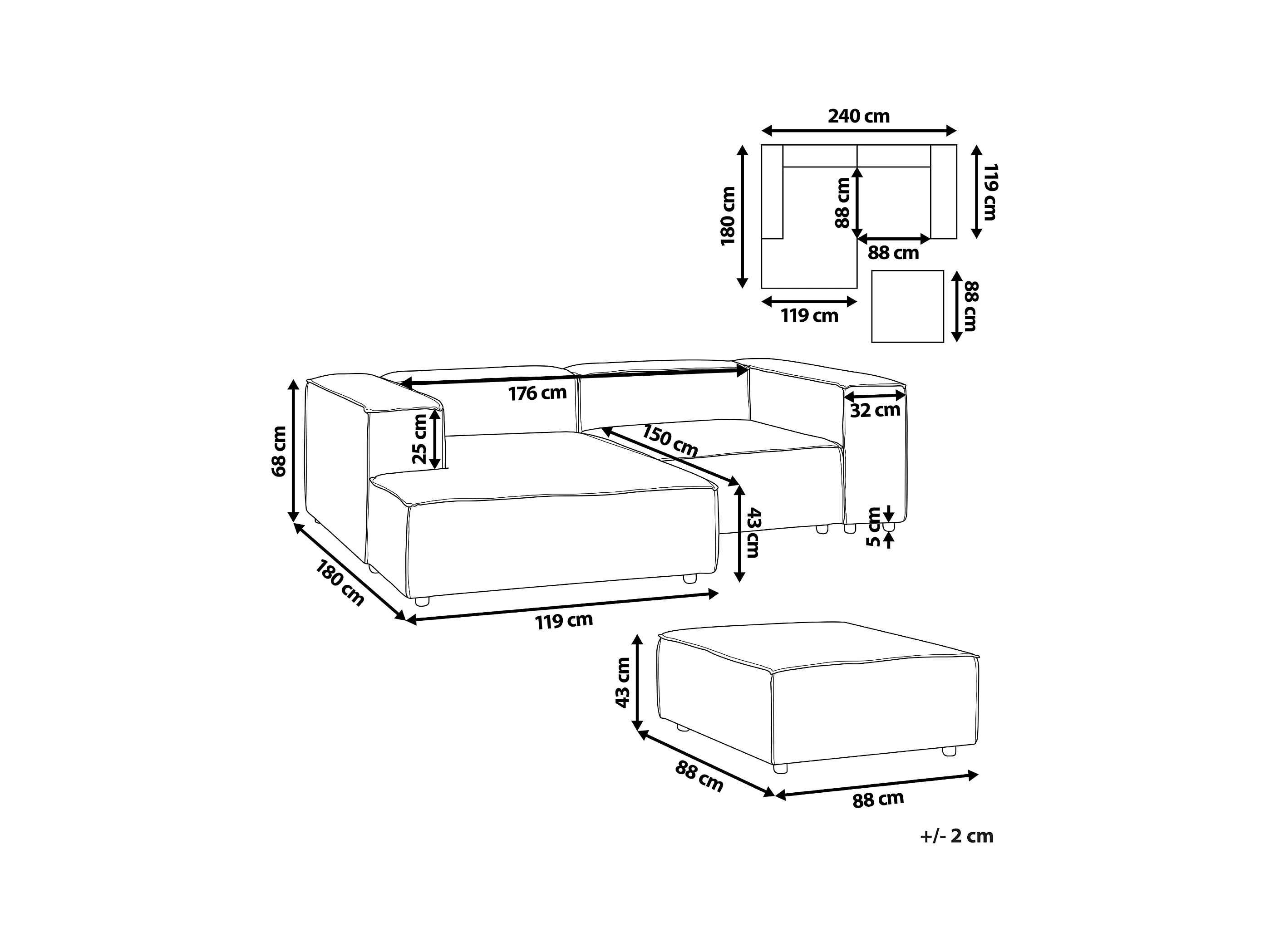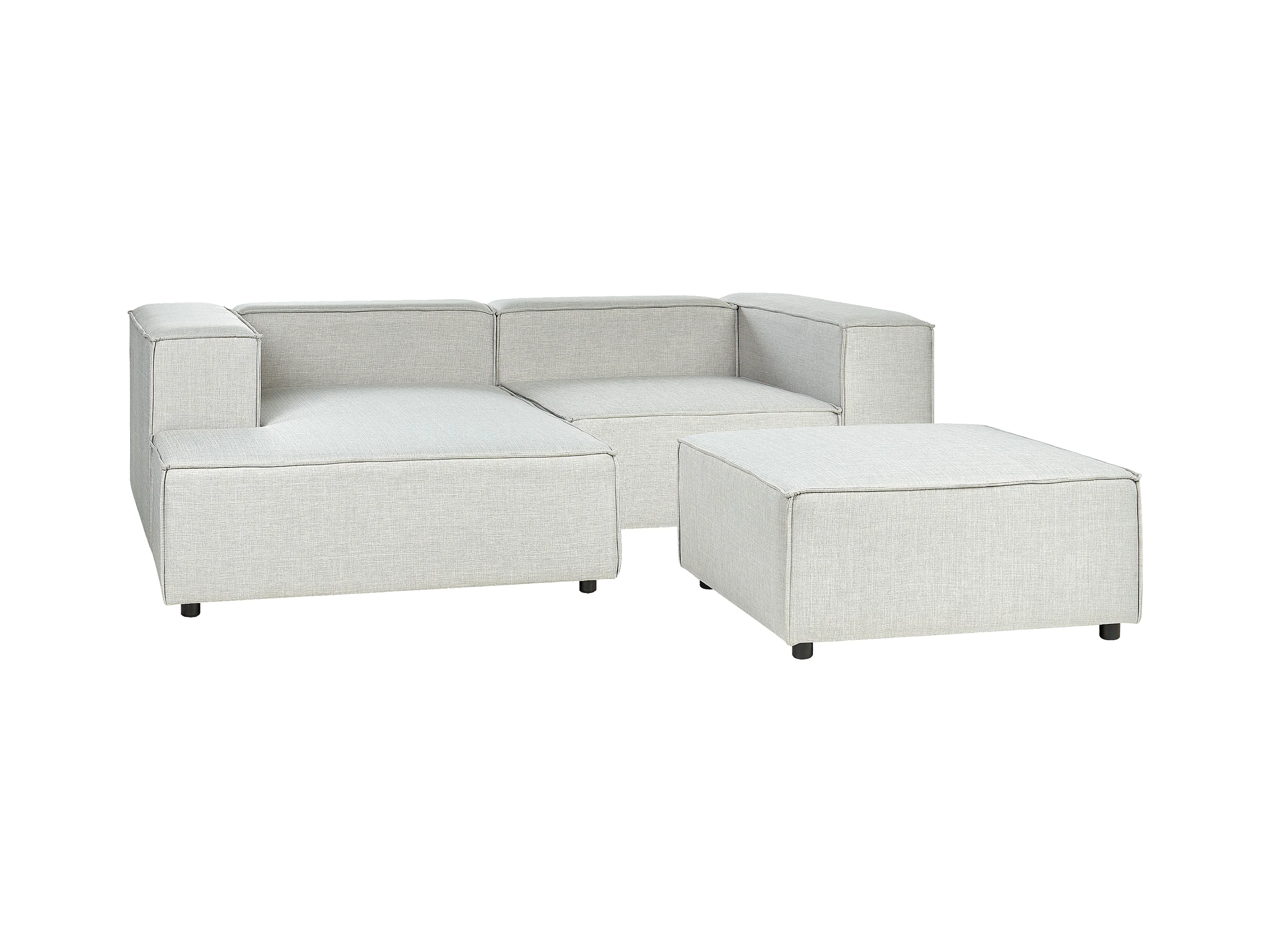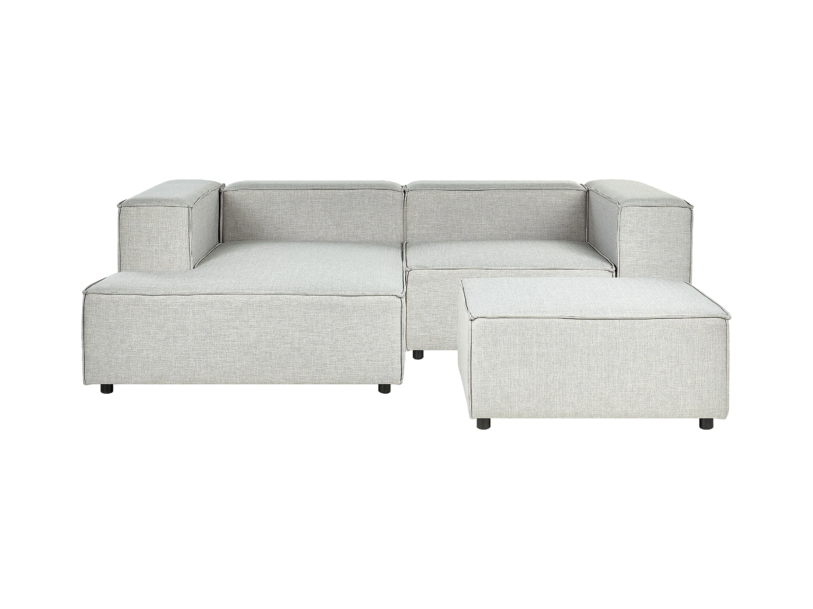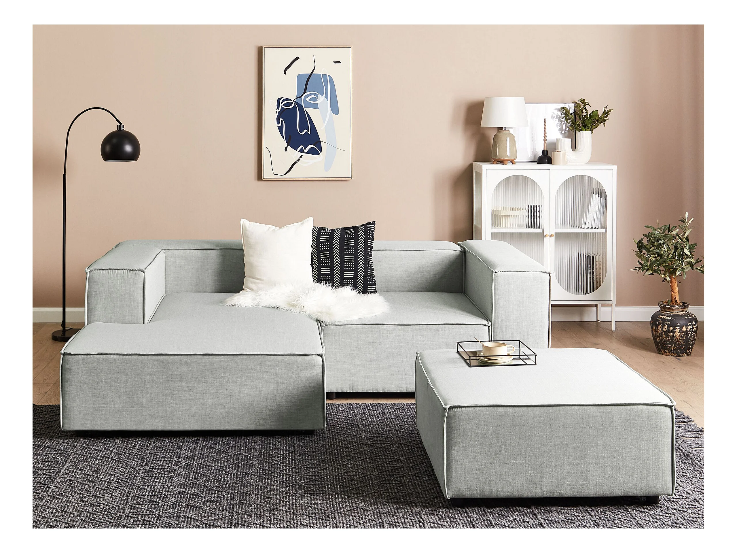 Angle Canapé 2 Places Côté Droit en Lin Gris Rembourré avec Pouf Elégant Aprica