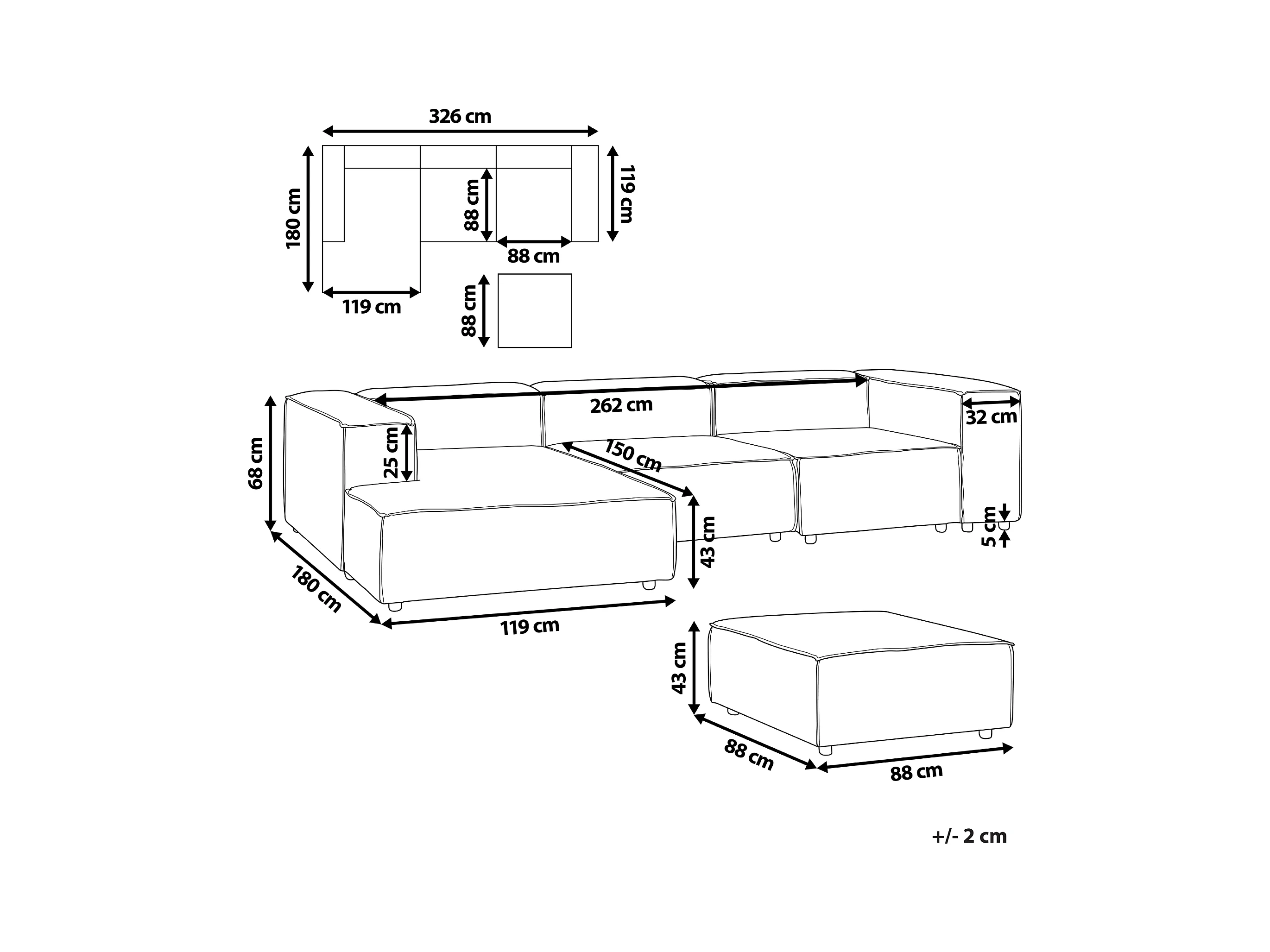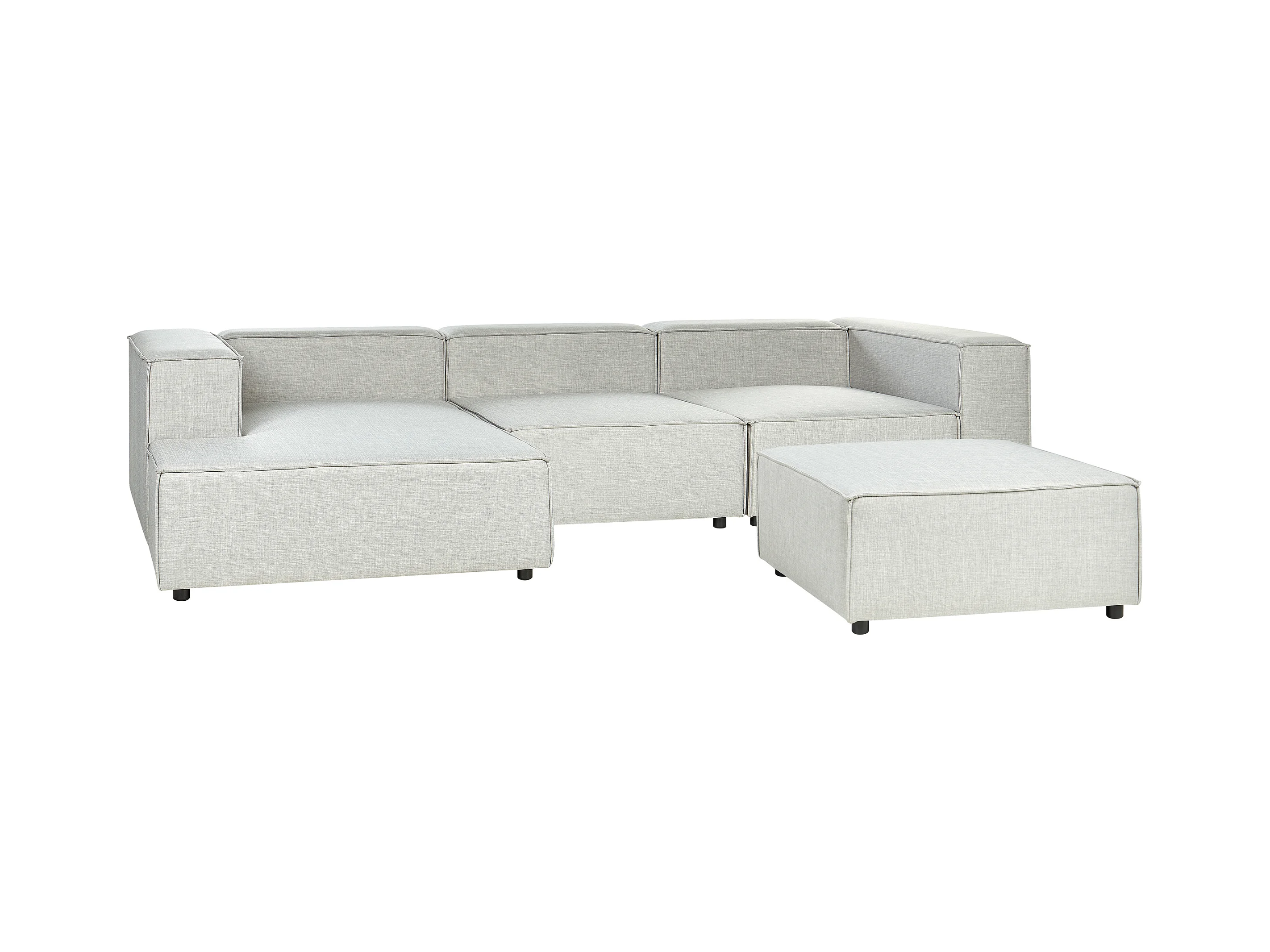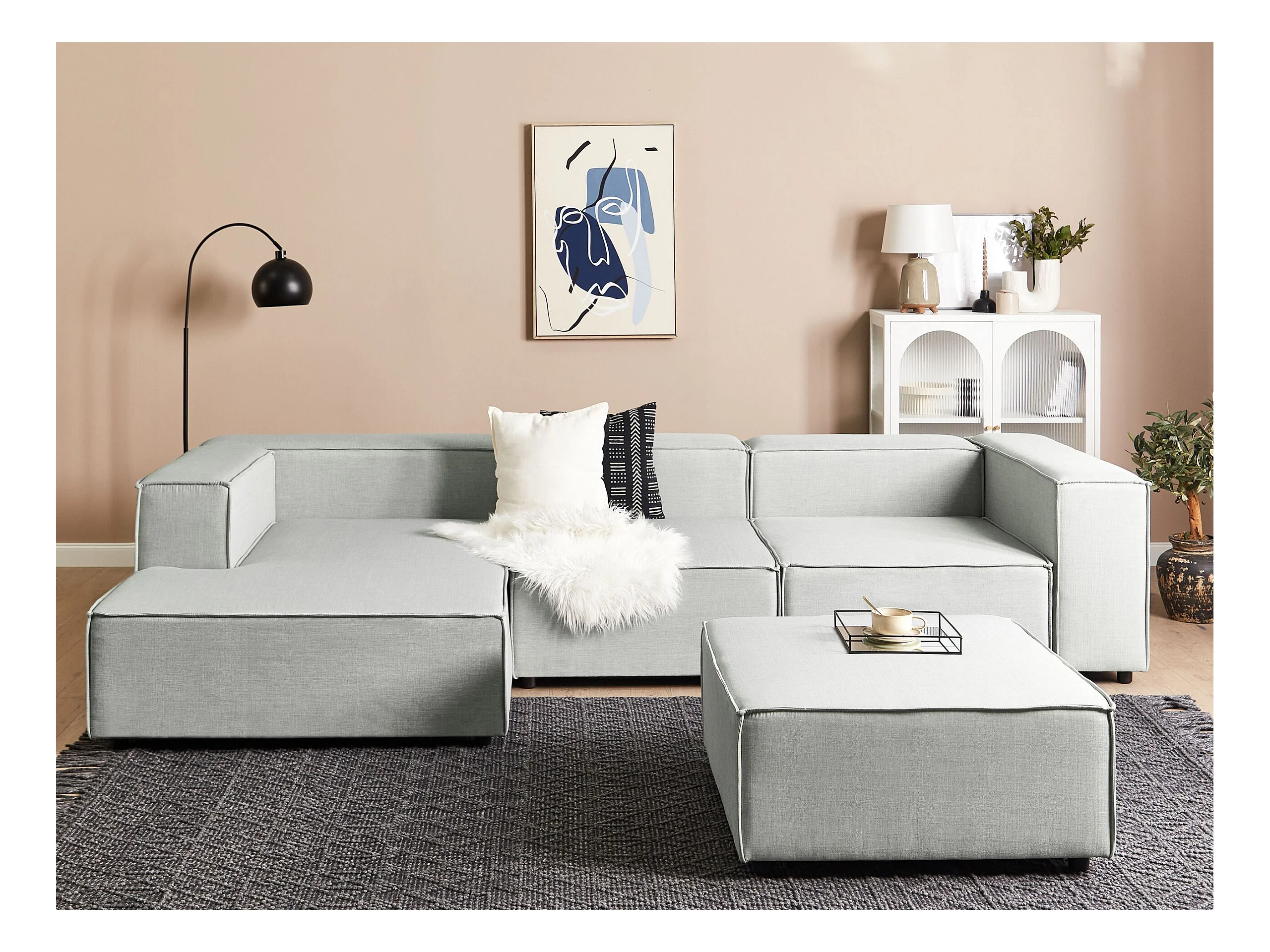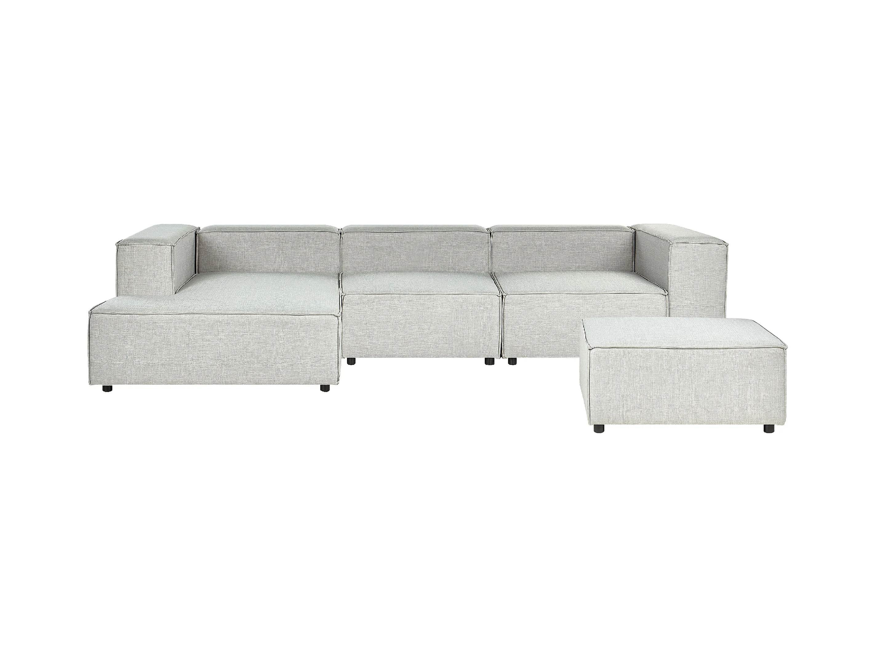 Angle Canapé 3 Places Côté Droit en Lin Gris Rembourré avec Pouf Elégant Aprica