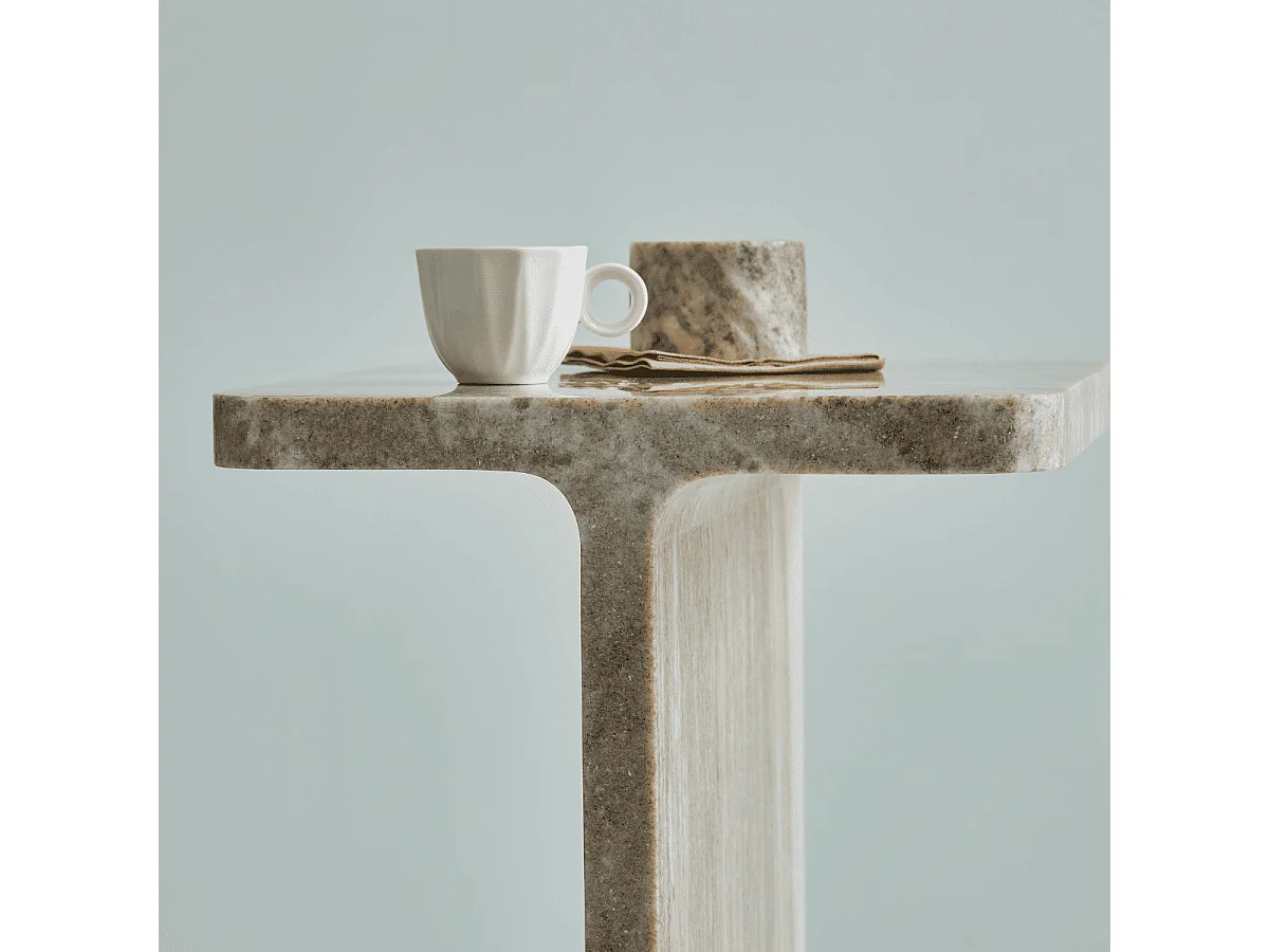 Table d'angle carrée en marbre porcelaine et noyer 2133 ANGEL CERDA