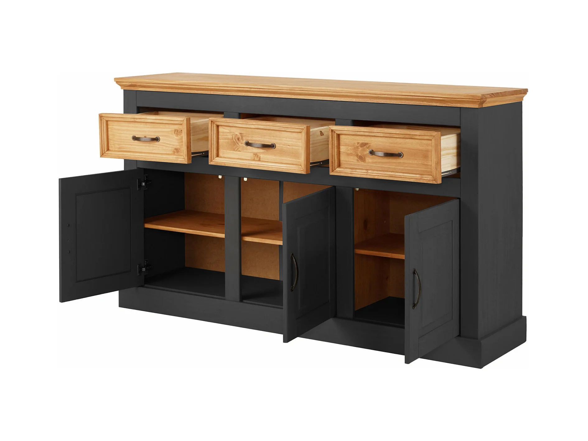 Selma | Buffet avec 3 portes et 3 tiroirs en pin anthracite