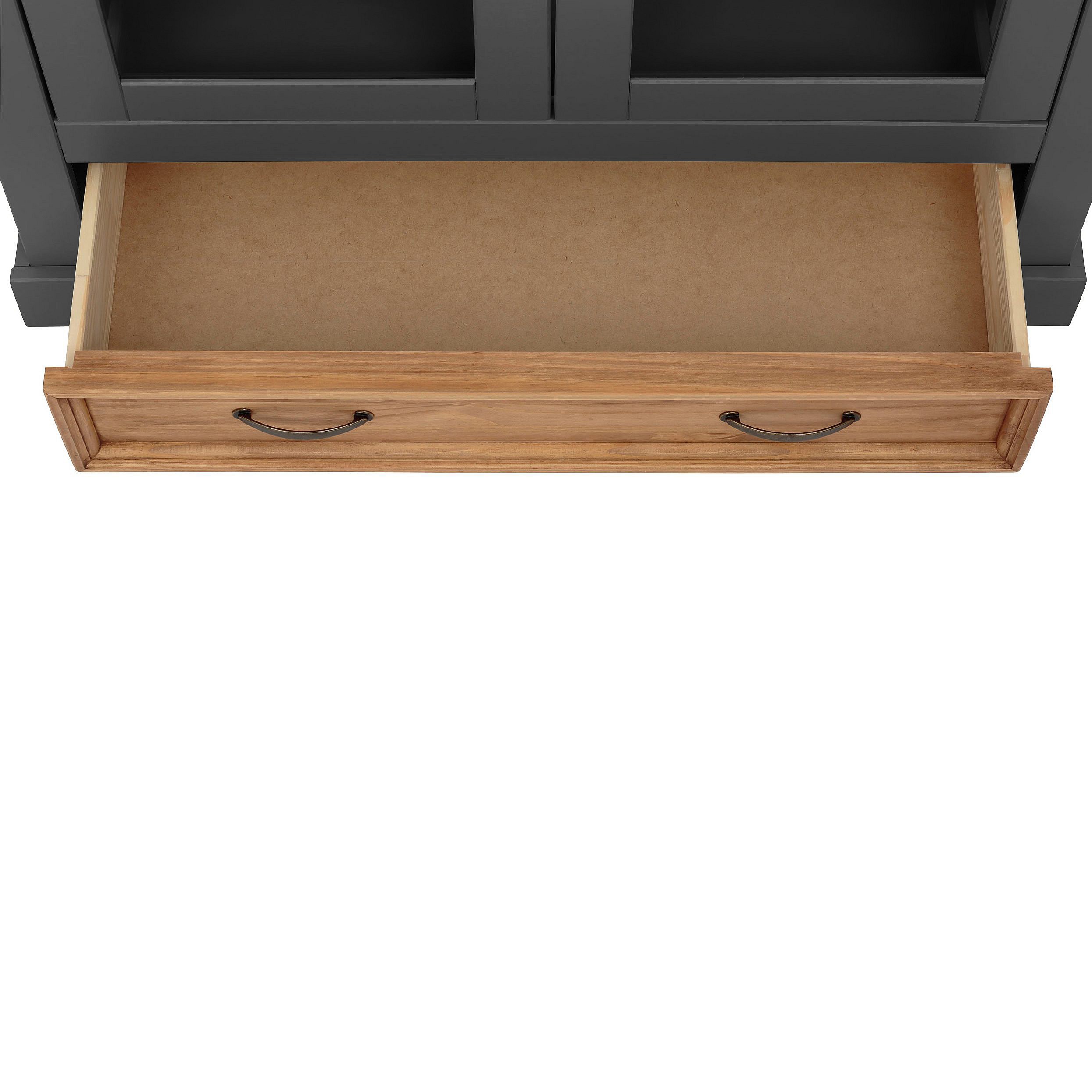 Selma | Buffet haut avec 2 portes vitrées et 1 tiroir en pin anthracite