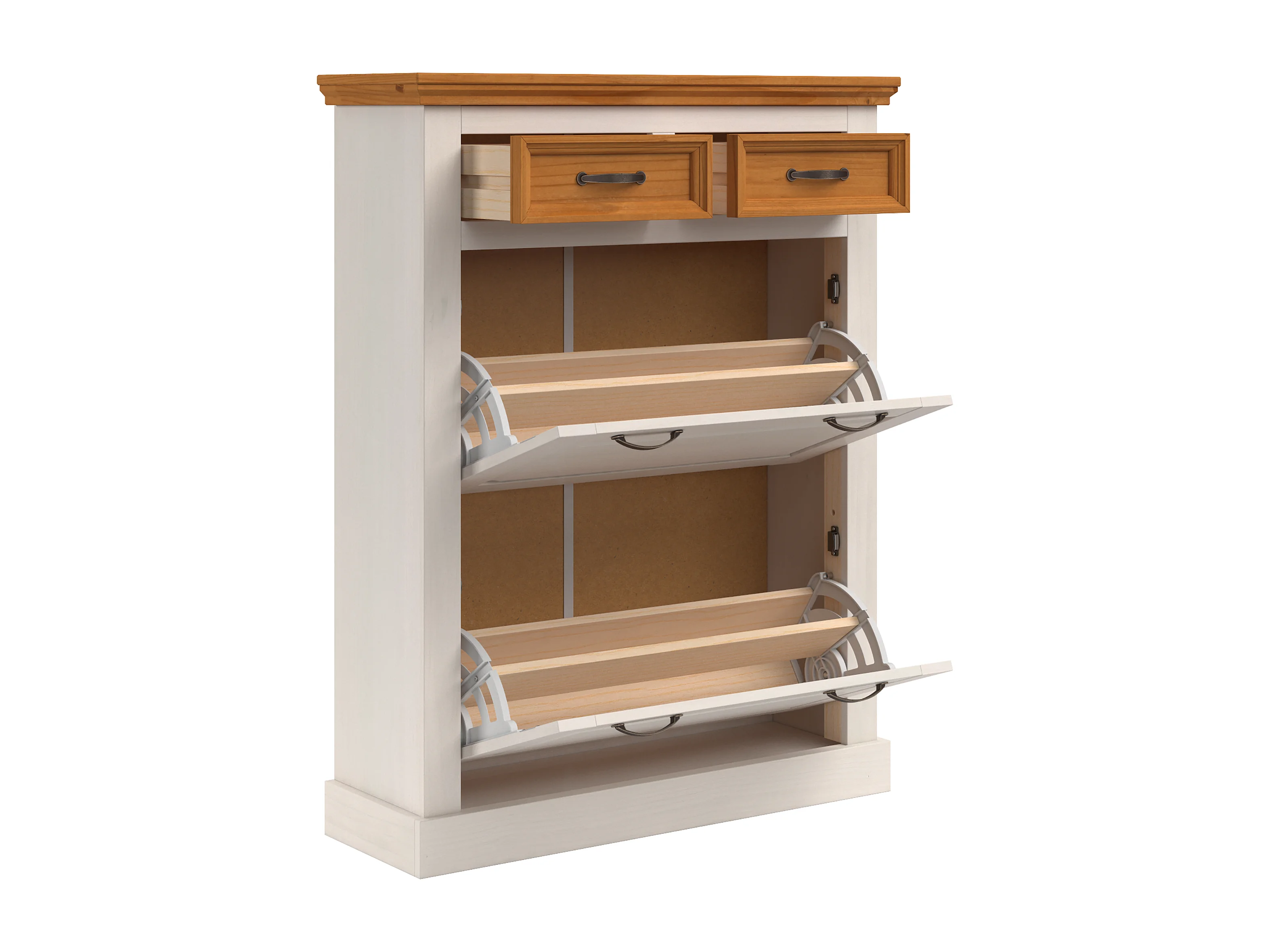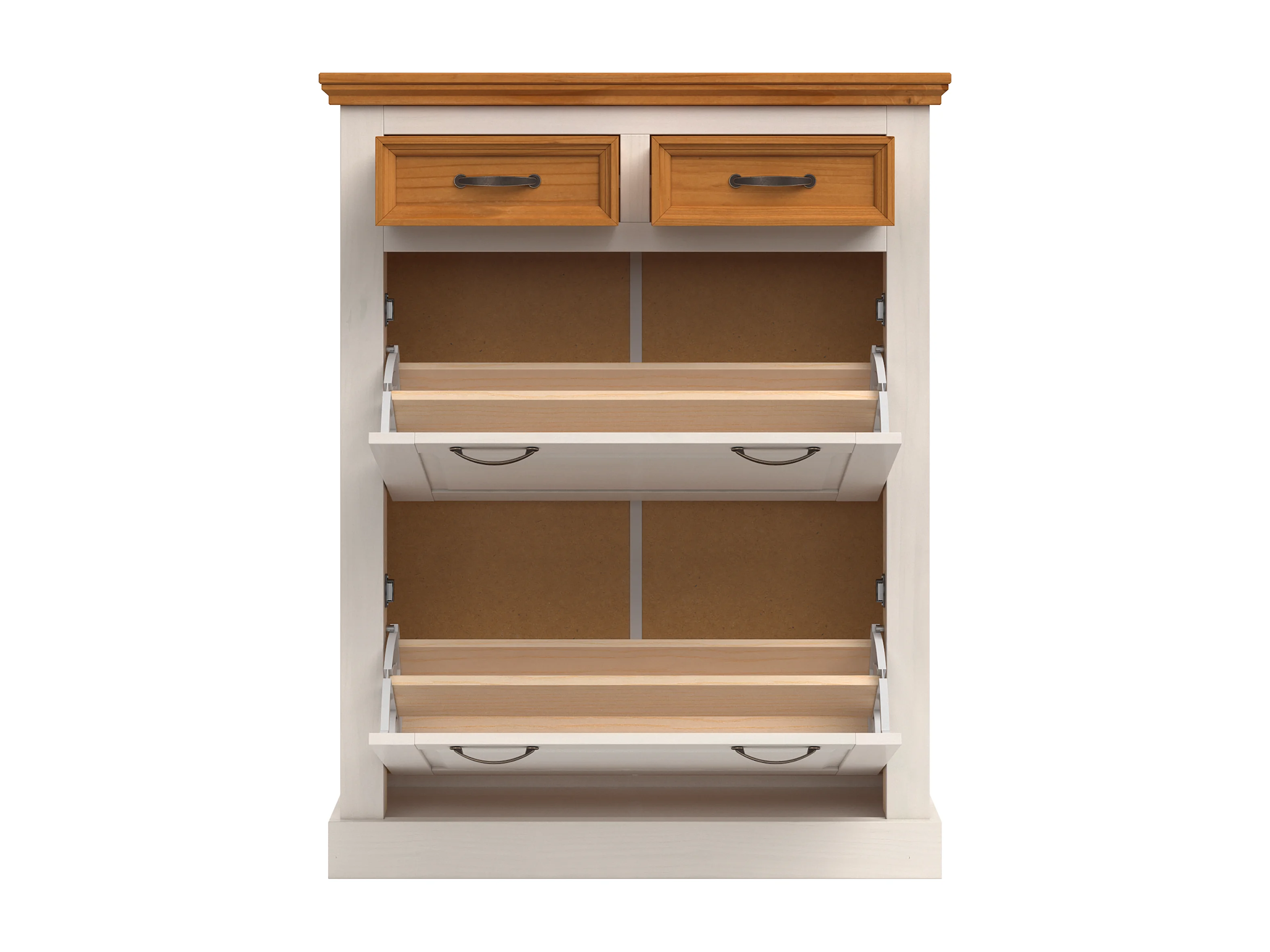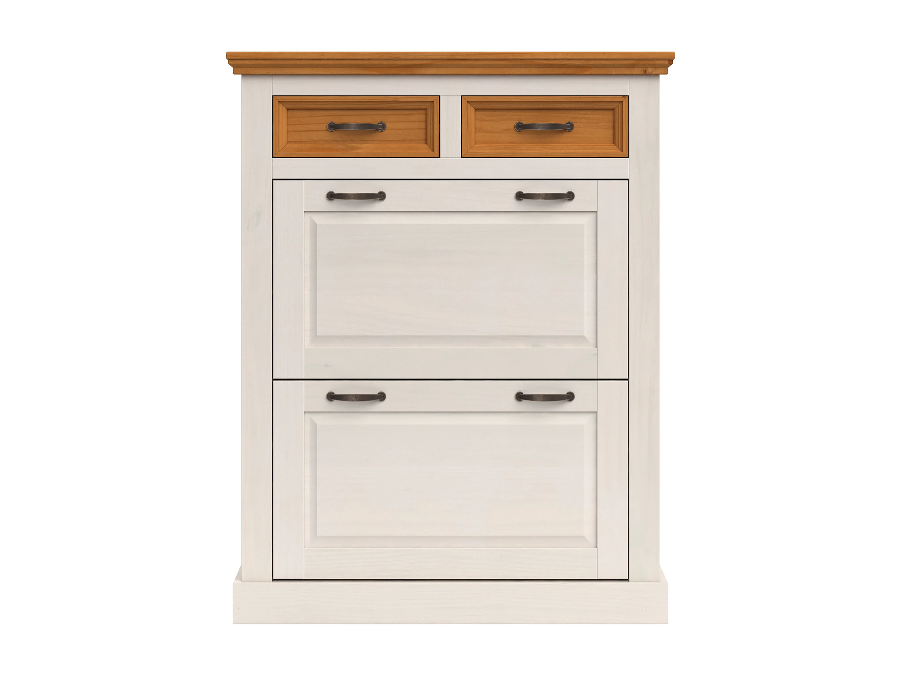 Selma | Rangement à chaussures avec 2 portes à rabat et 2 tiroirs en blanc sapin