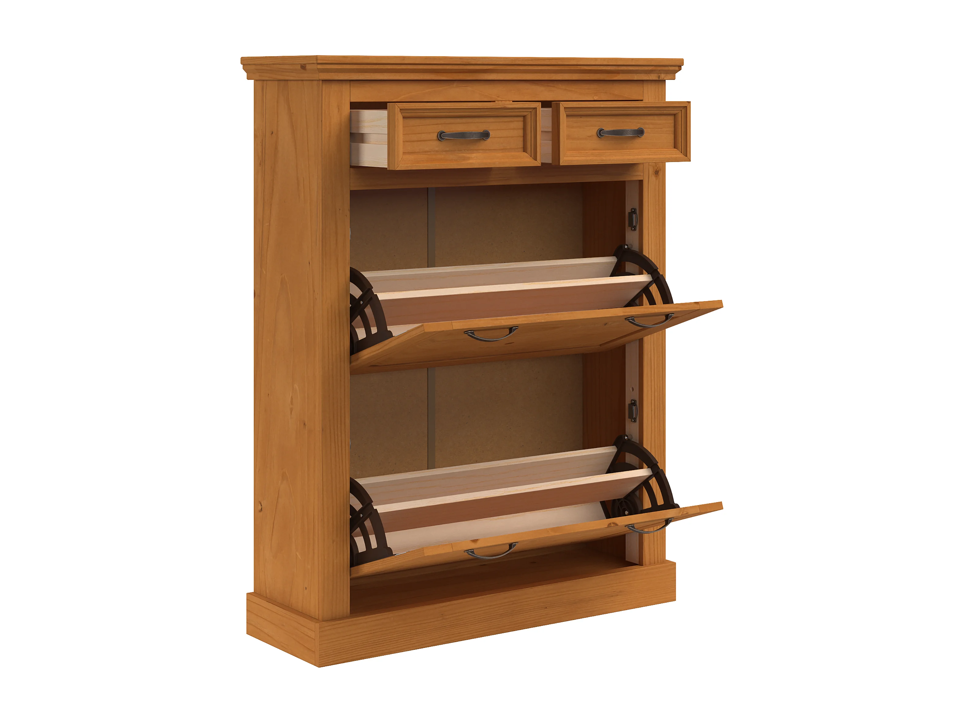 Selma | Rangement pour chaussures avec 2 portes à rabat et 2 tiroirs en pin