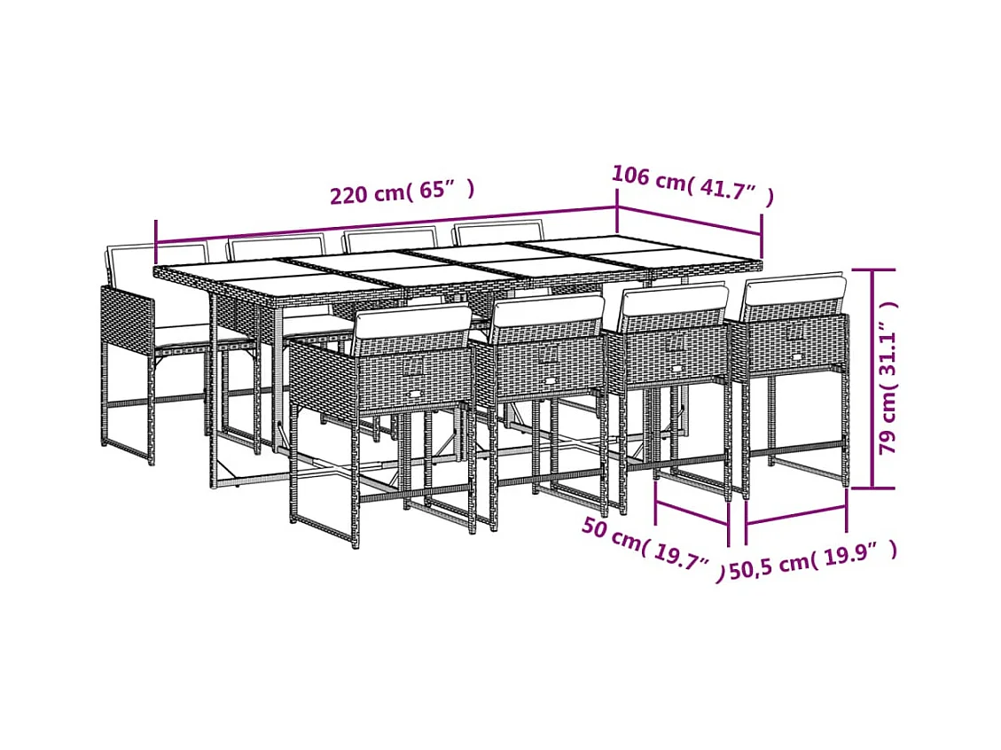Zenn Ensemble à manger de jardin avec coussins 13 pcs marron rotin