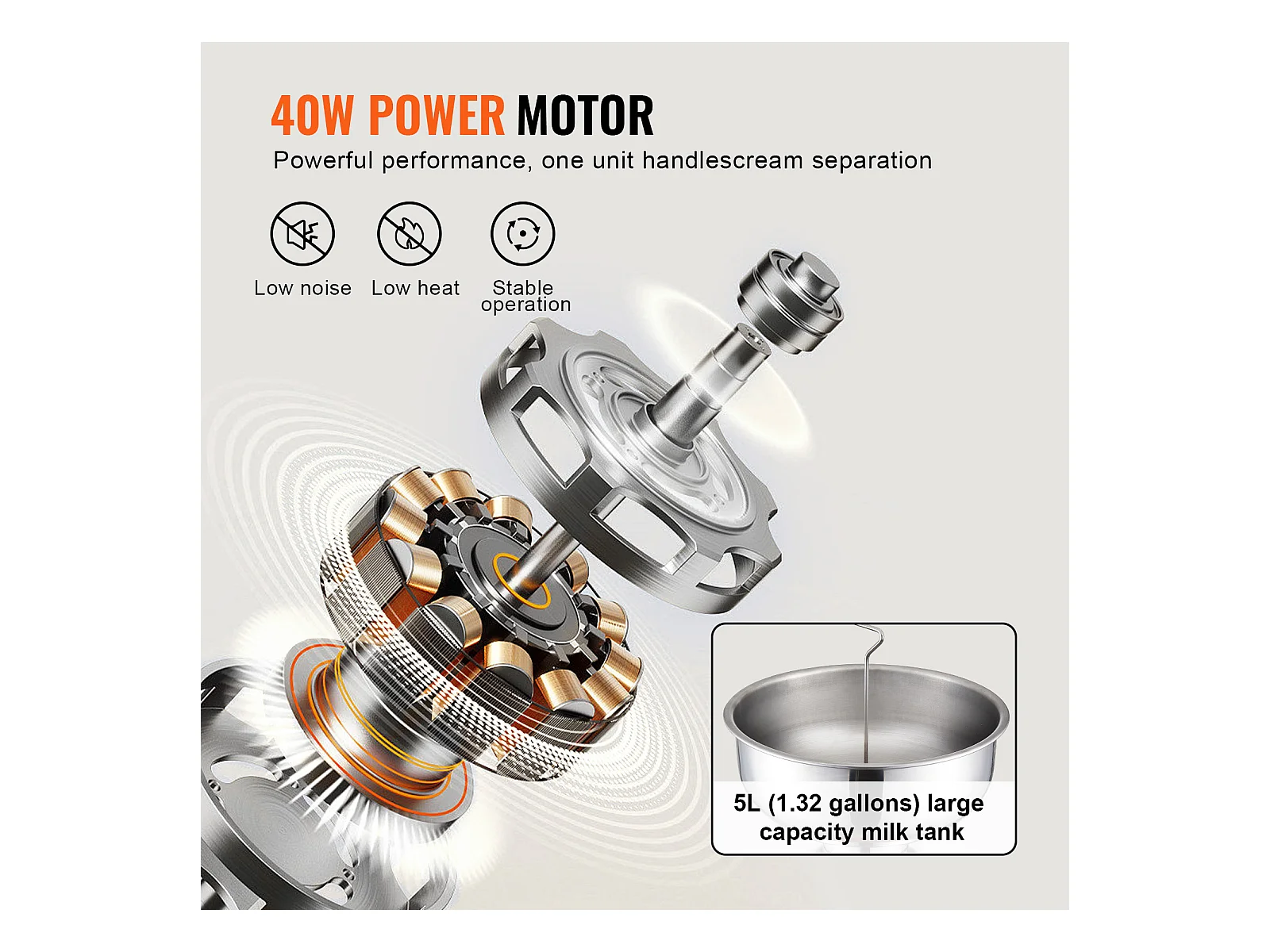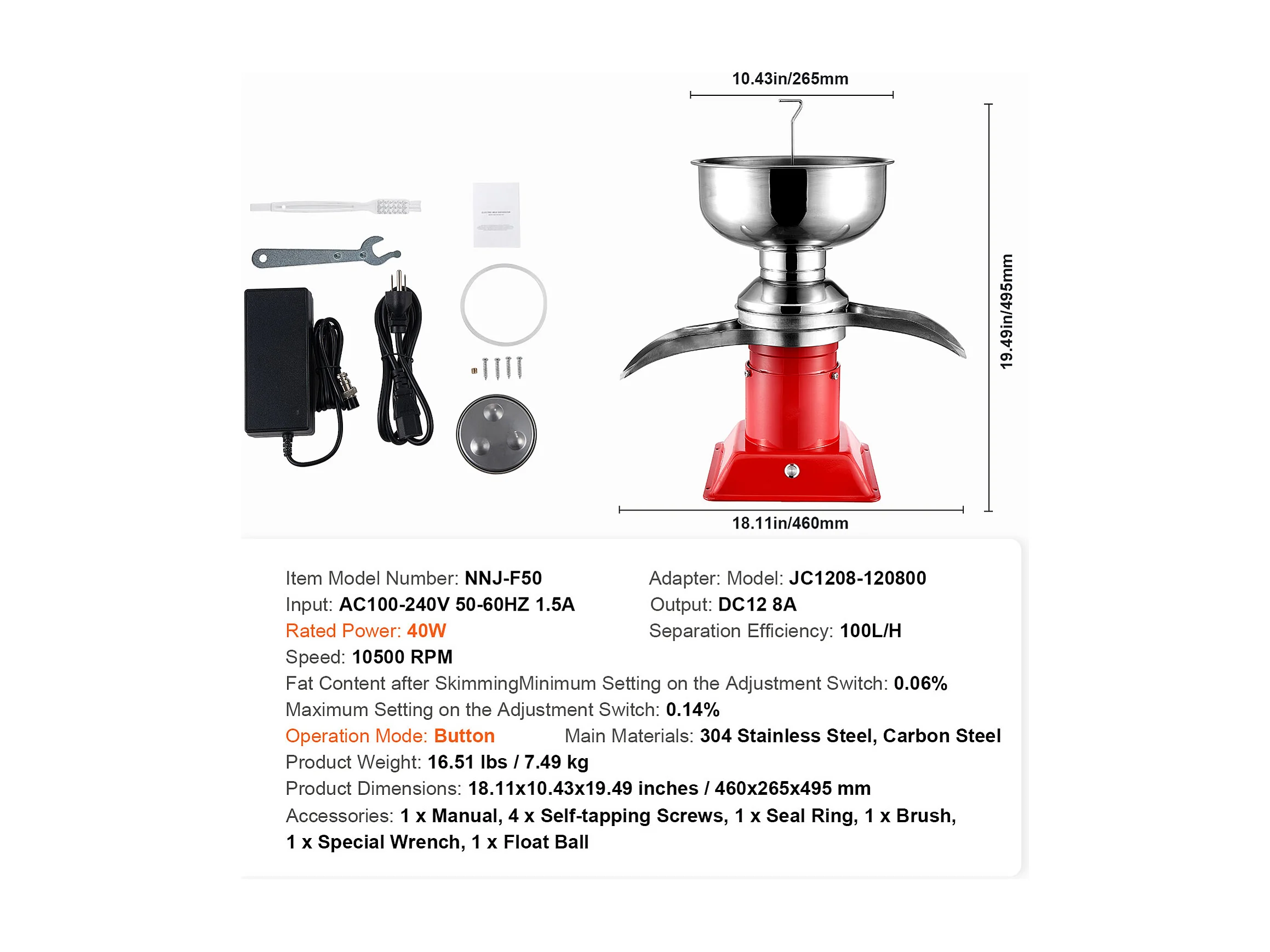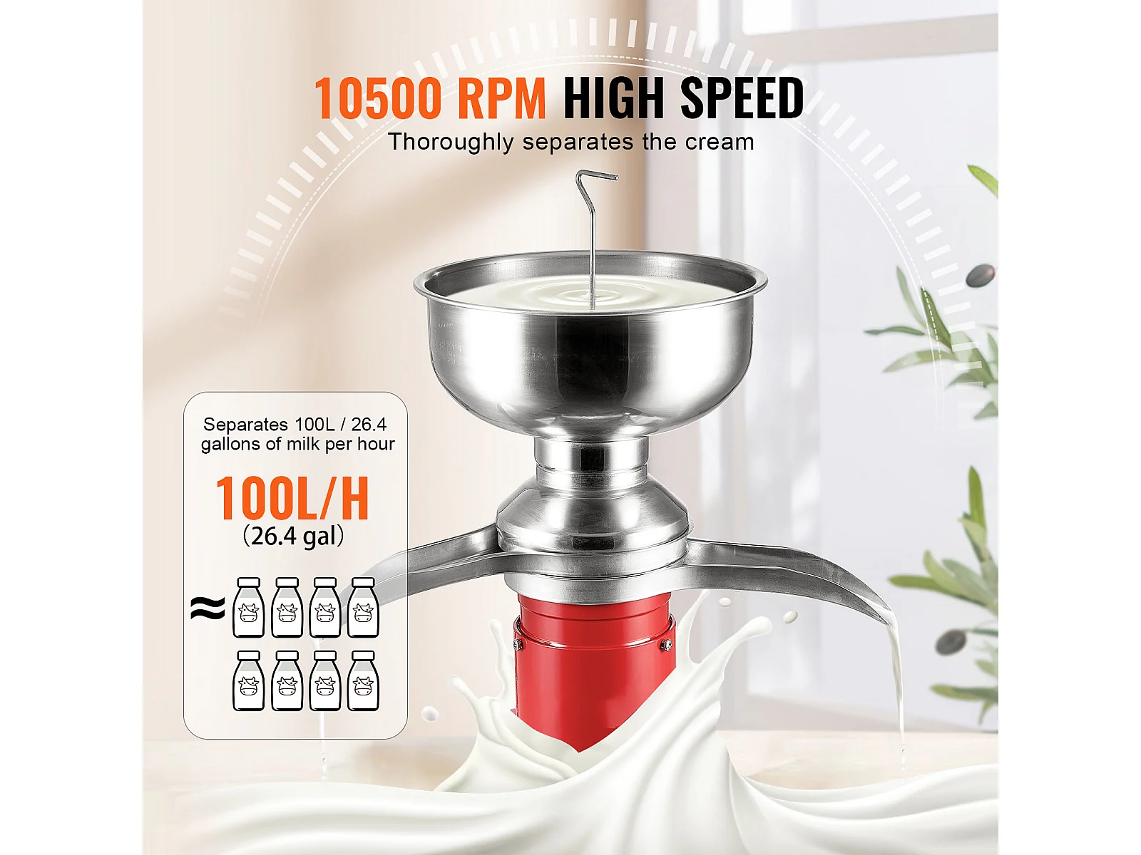 Séparateur de Crème Électrique SucceBuy 30 W, Sortie 100 L/H, 100-240 V, en Acier Inoxydable