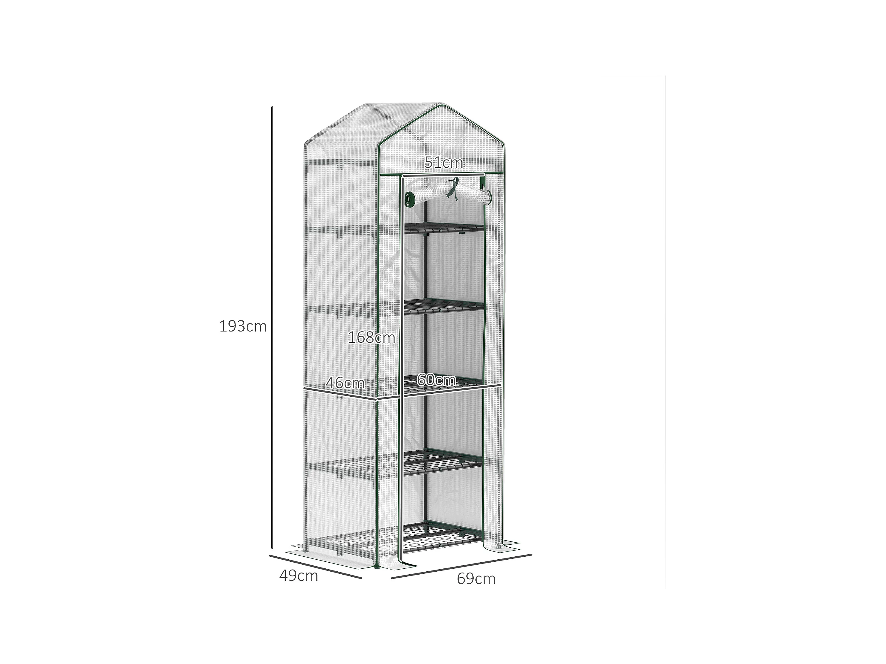 Serre avec porte roulante, étagères, métal, blanc (69x49x193 cm)