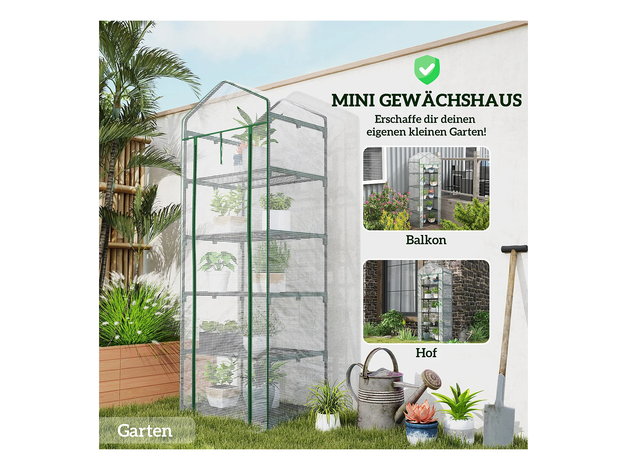 Serre de jardin avec toit arrondi, étagères, acier, blanche (100x45x160 cm)
