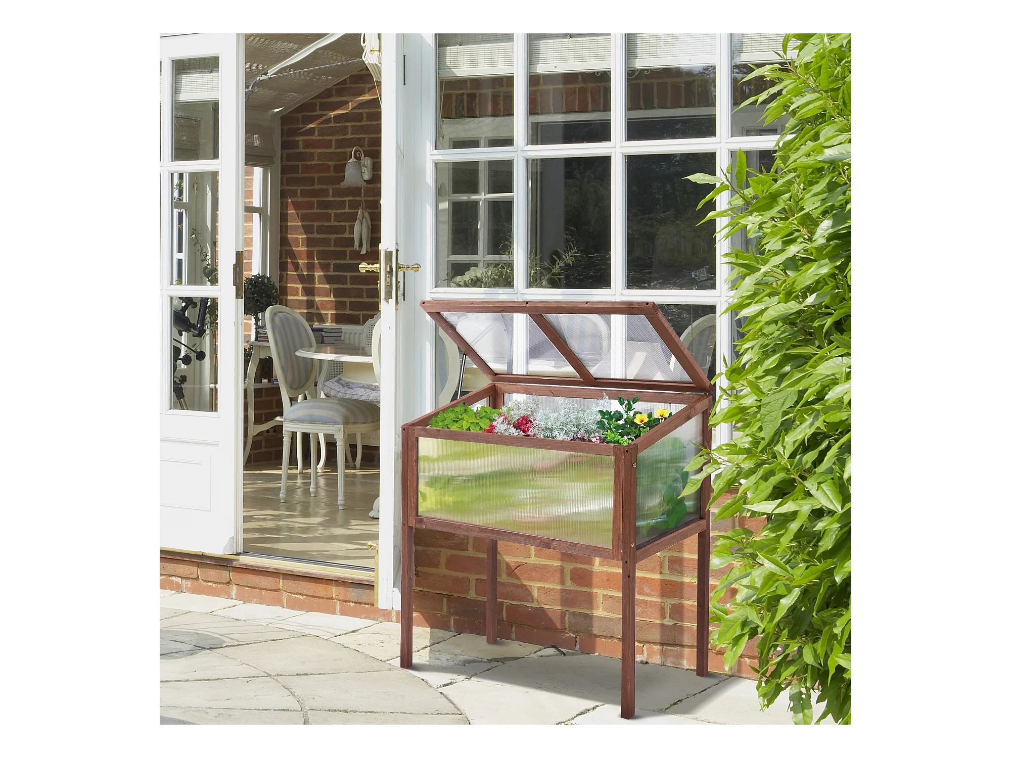 Serre de jardin avec couverture transparente, en bois et PC, pour légumes et plantes, brun (90x50x93 cm)