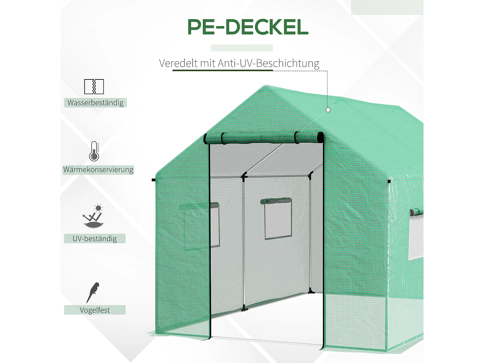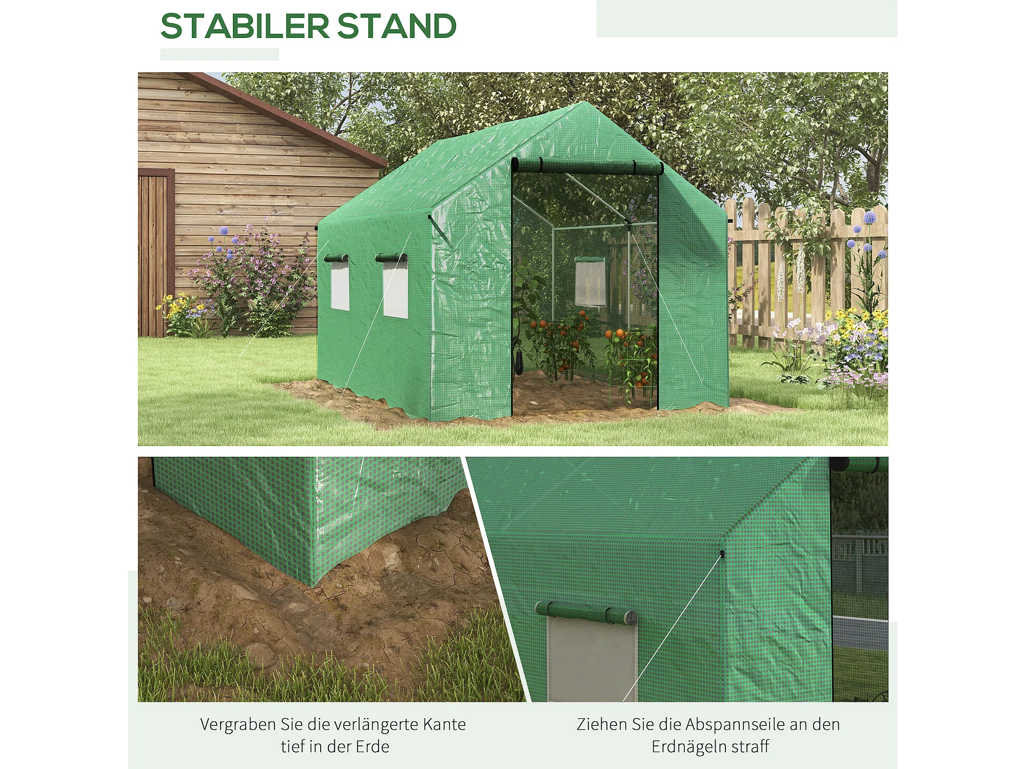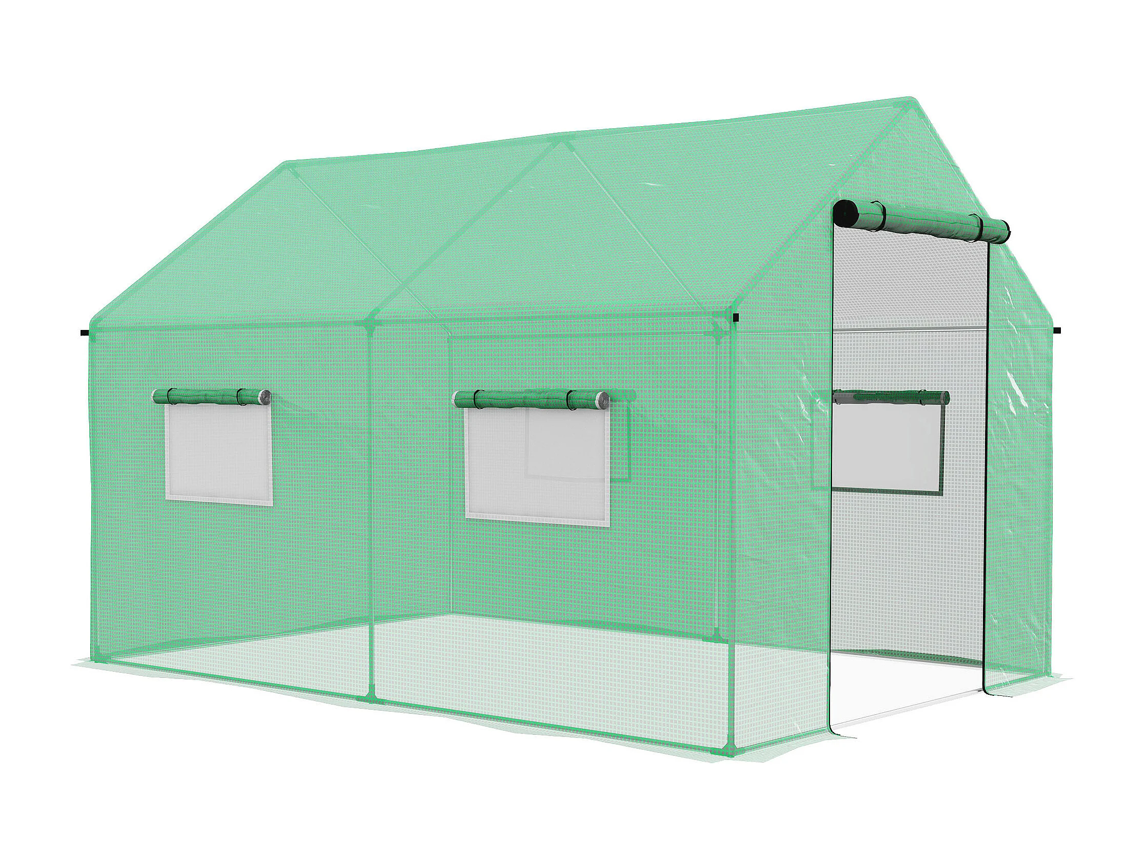Serre tunnel avec fenêtres roulables, protection UV et vent, structure en acier, verte (200x300x200 cm)