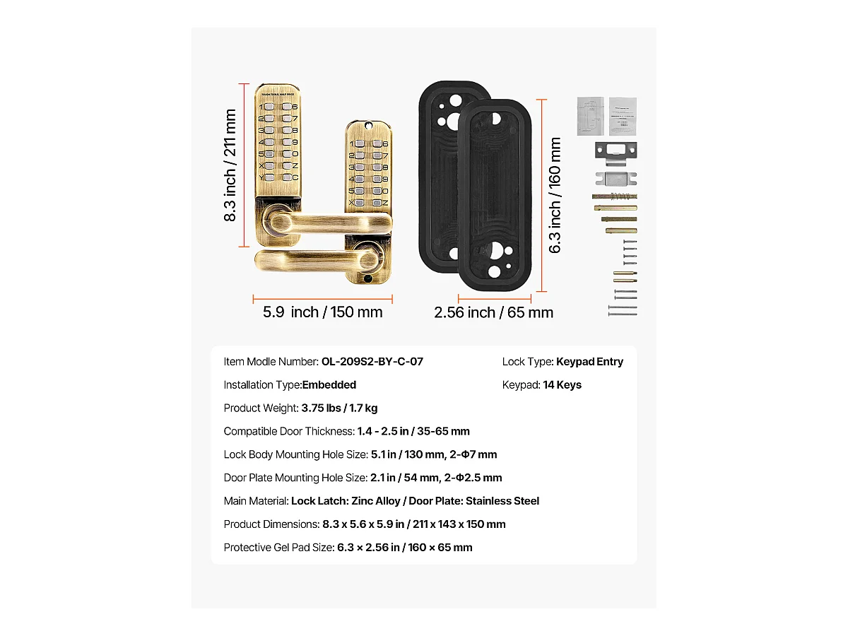 Serrure de Porte Mécanique SucceBuy sans Clé 14 Clés pour la Maison et le Bureau, Bureau, Garage, Acier Inoxydable