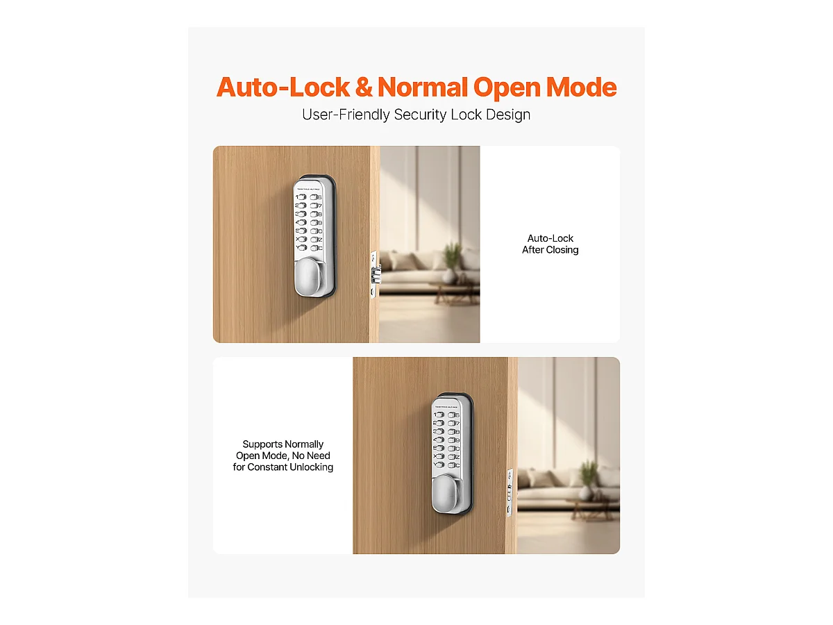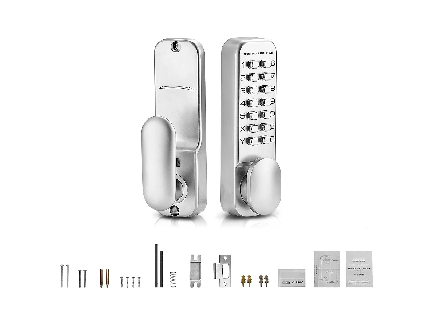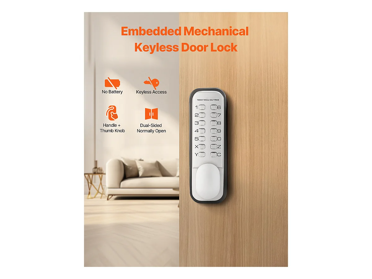 Serrure de Porte Mécanique SucceBuy sans Clé , Serrure à Clavier à 14 Touches, Argent