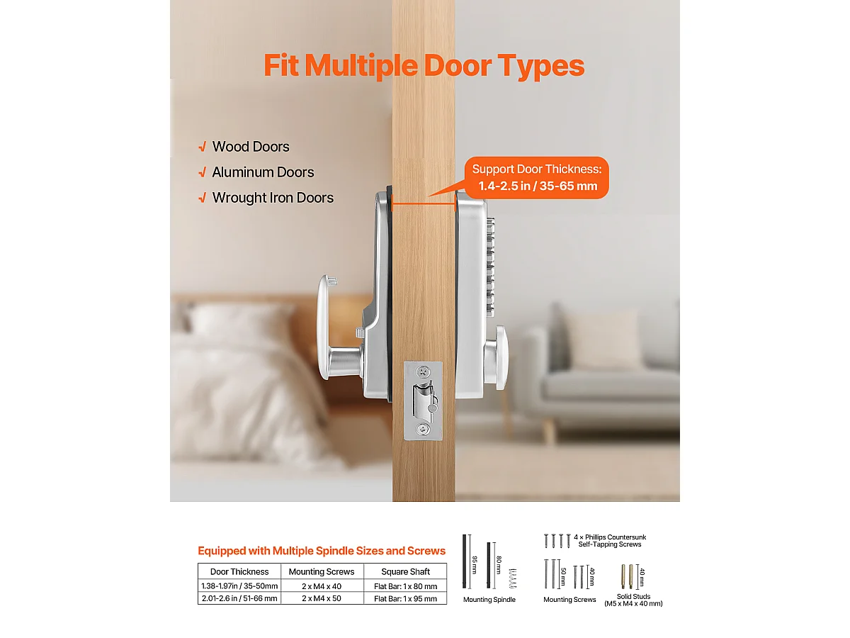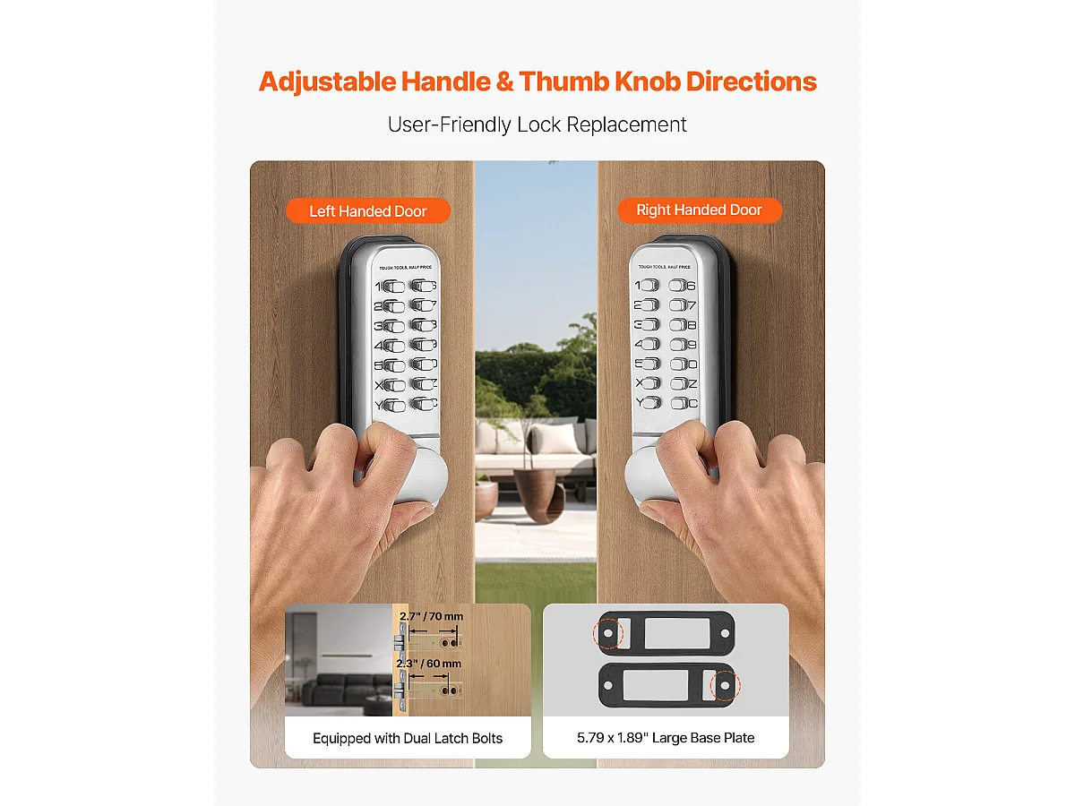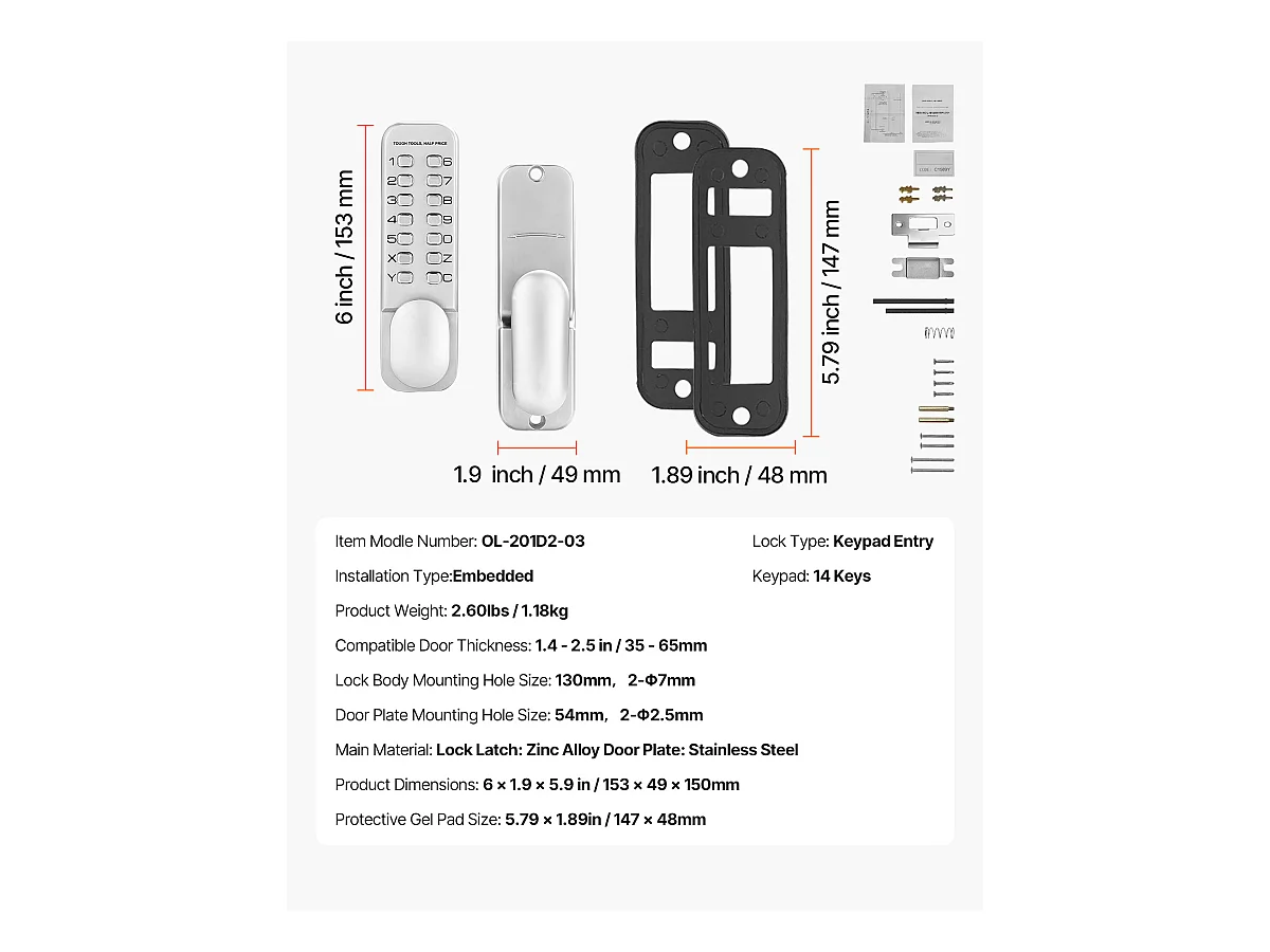 Serrure de Porte Mécanique SucceBuy sans Clé , Serrure à Clavier à 14 Touches, Argent