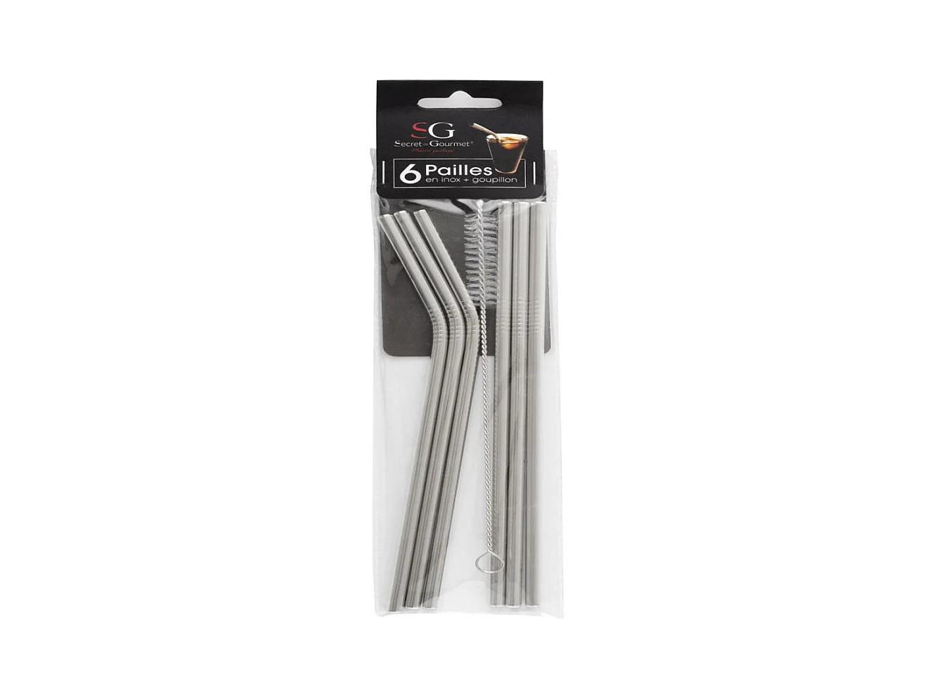 Lot de 6 Pailles & Goupillon "Colada" 21cm Argent