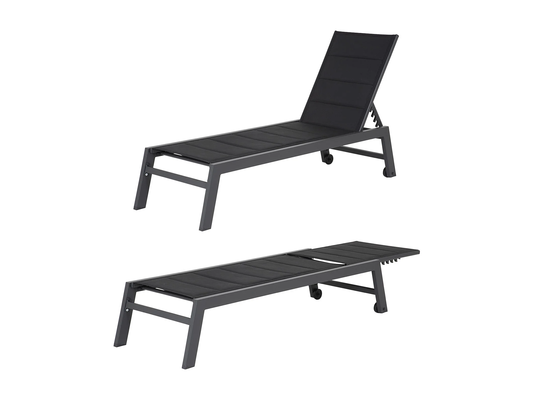 Set bain de soleil et table d'appoint BARBADOS en textilène noir - aluminium gris anthracite