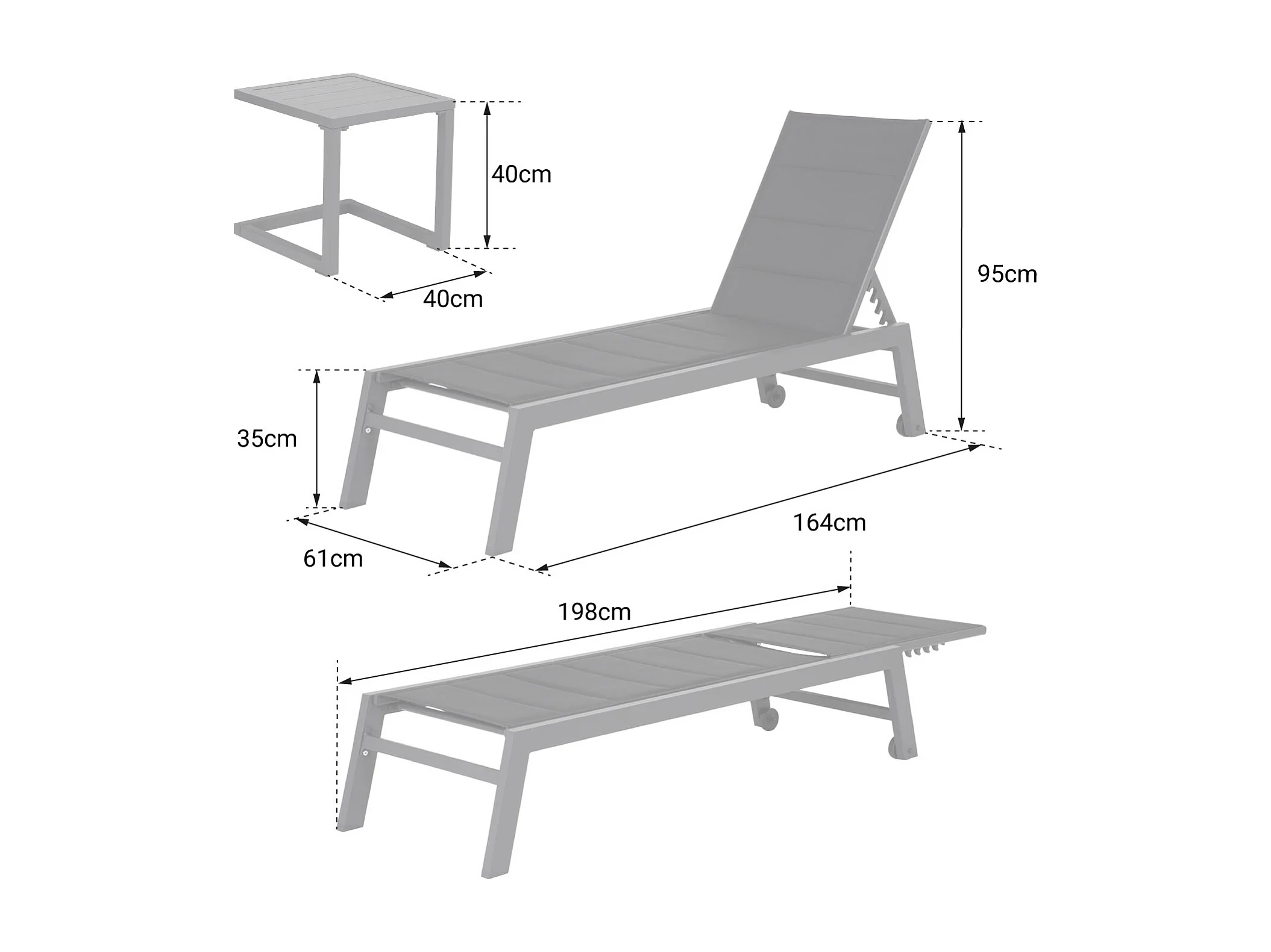 Set bain de soleil et table d'appoint BARBADOS en textilène taupe - aluminium blanc