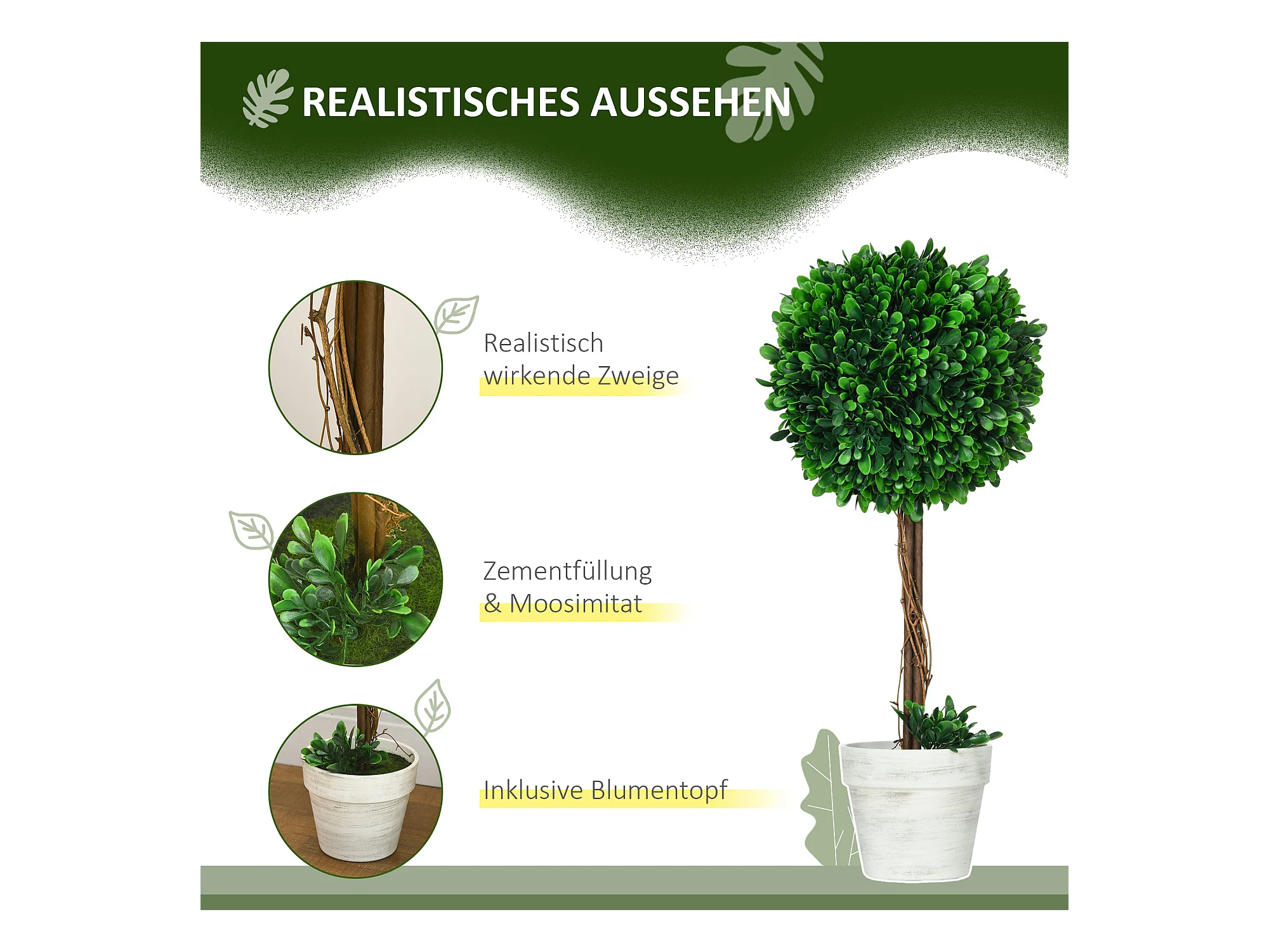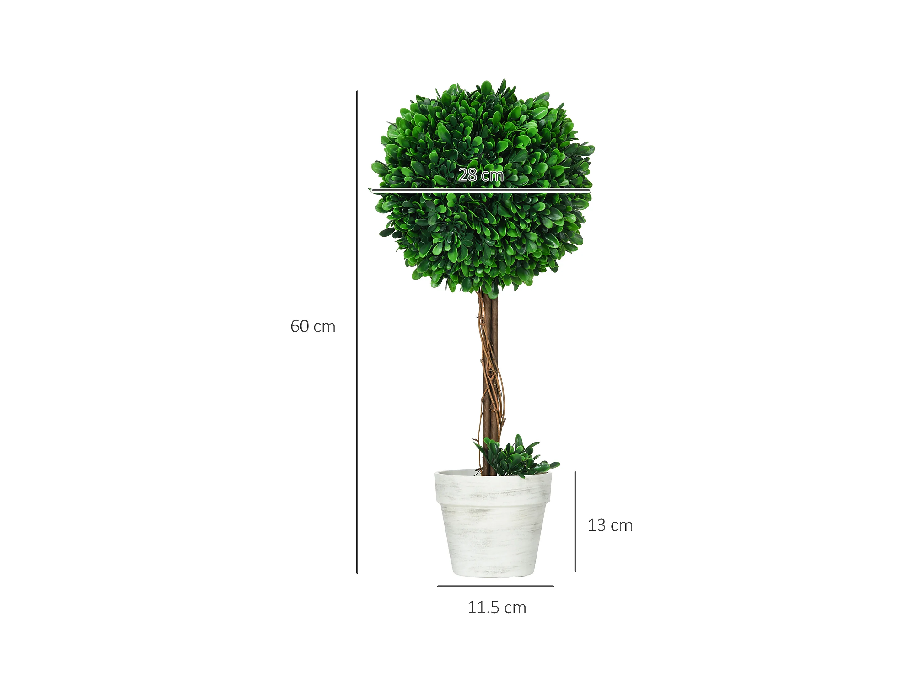 Lot de 2 buis artificiels, résistants aux UV, avec double boule, pour l'intérieur et le jardin, en plastique, vert (17 x 17 x 60 cm)