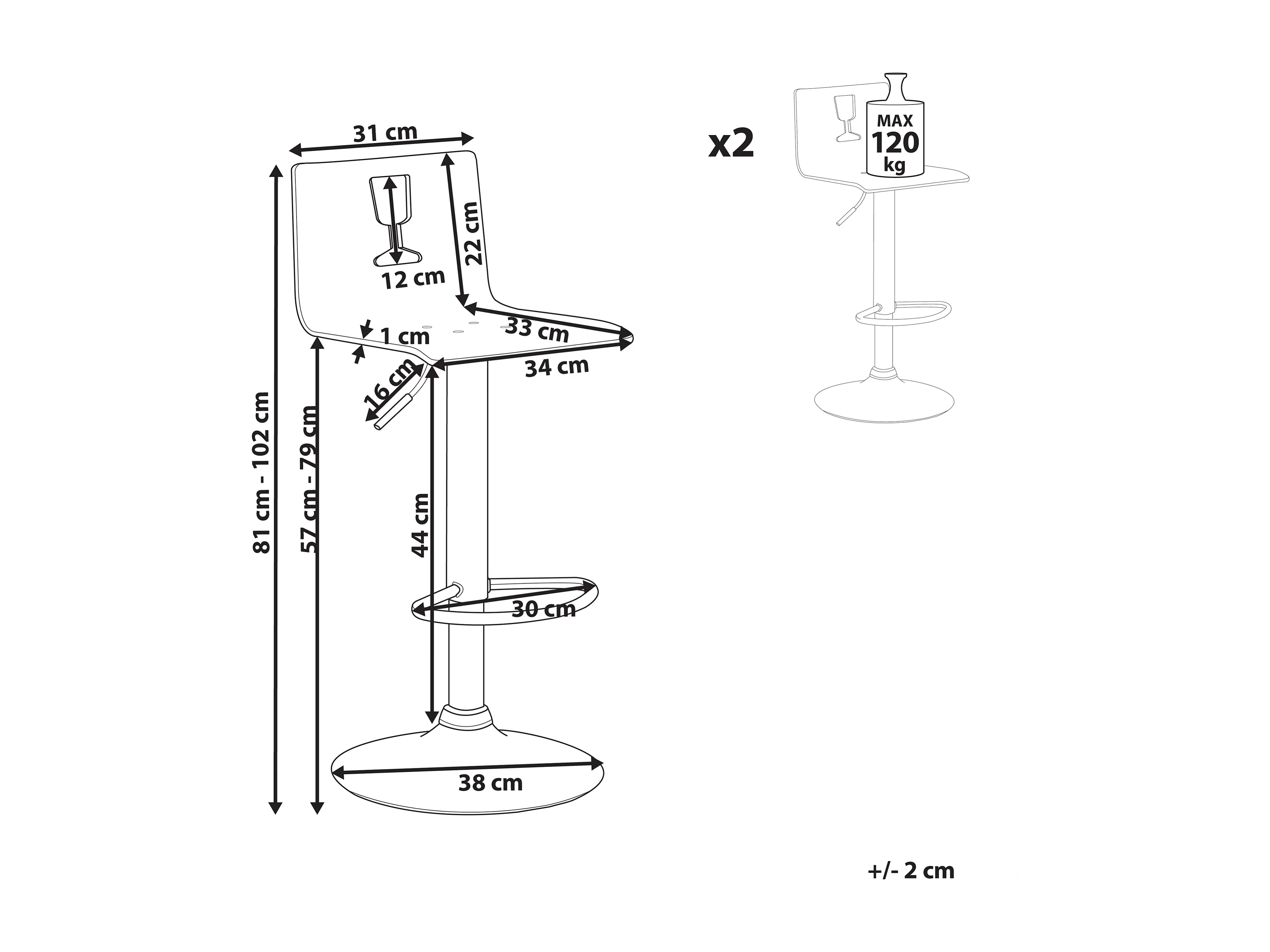 Lot de 2 Tabouret de bar - Plastique & Métal chromé - Blanc - Hover