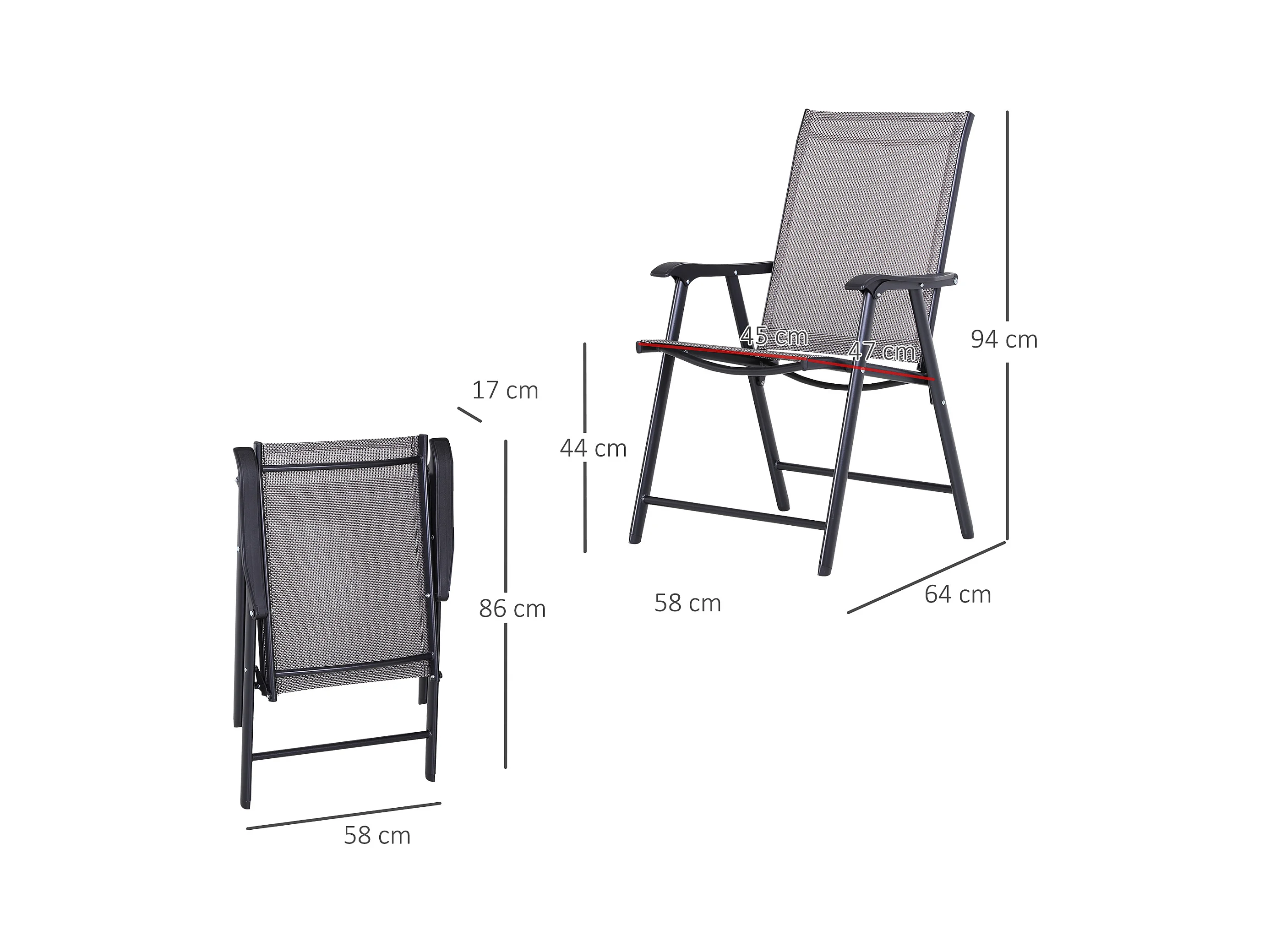 Set de 2 chaises de camping pliables avec accoudoirs, métal, gris (58x64x94 cm)