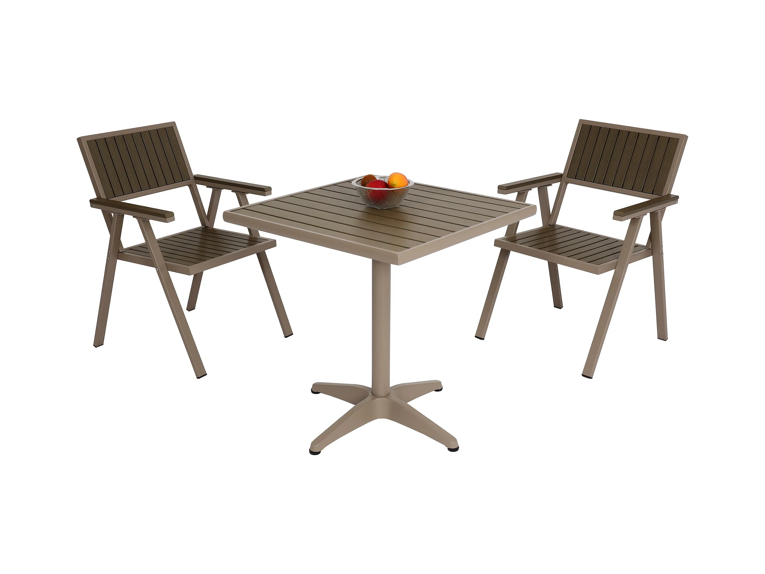 Set de 2 chaises de jardin + table de jardin MCW-J95, champagne, gris