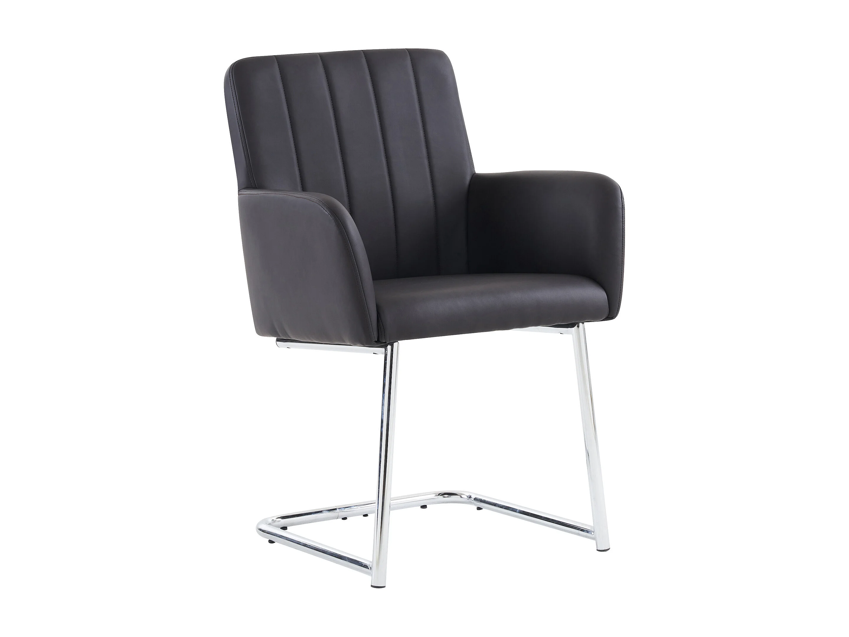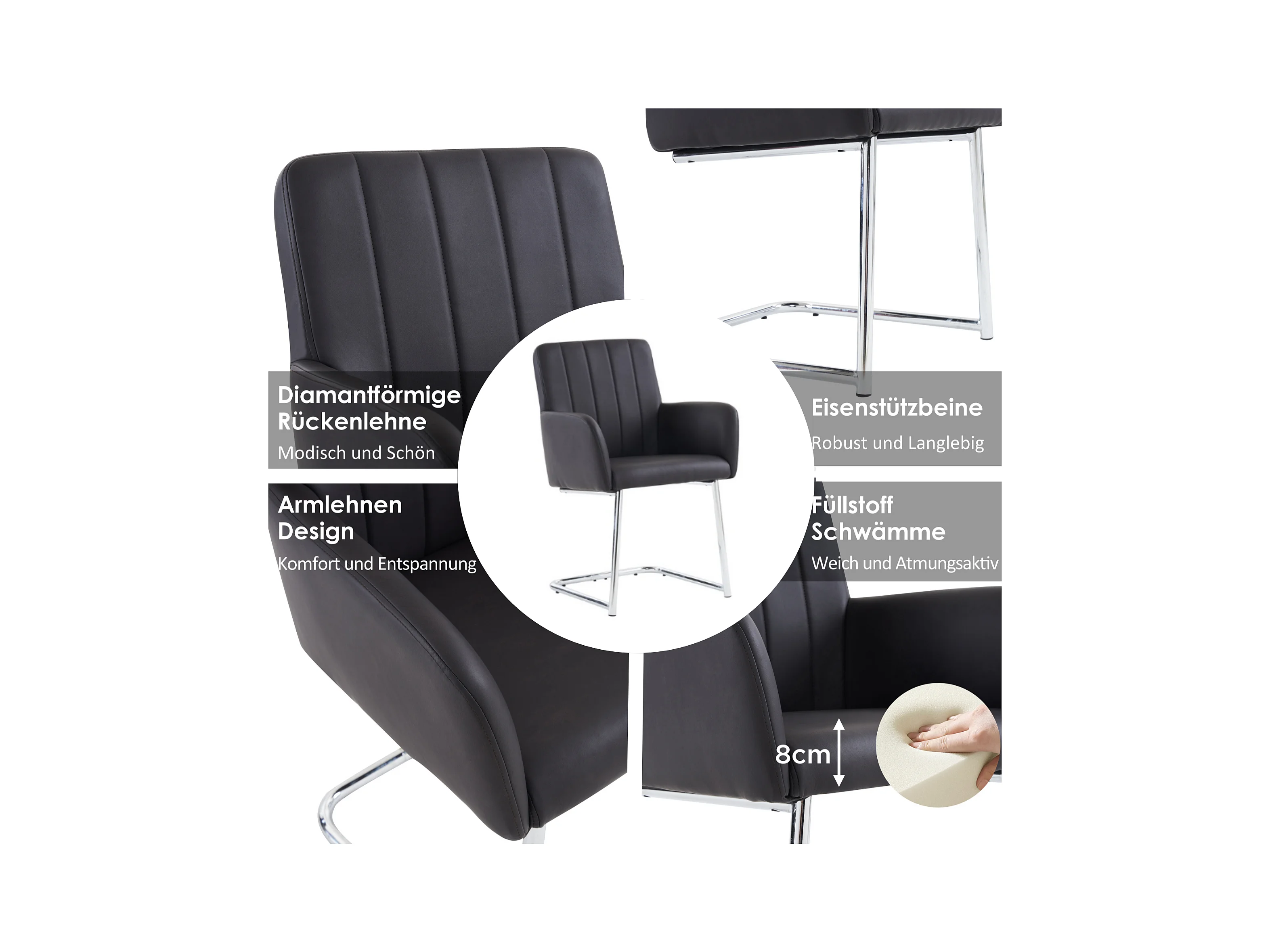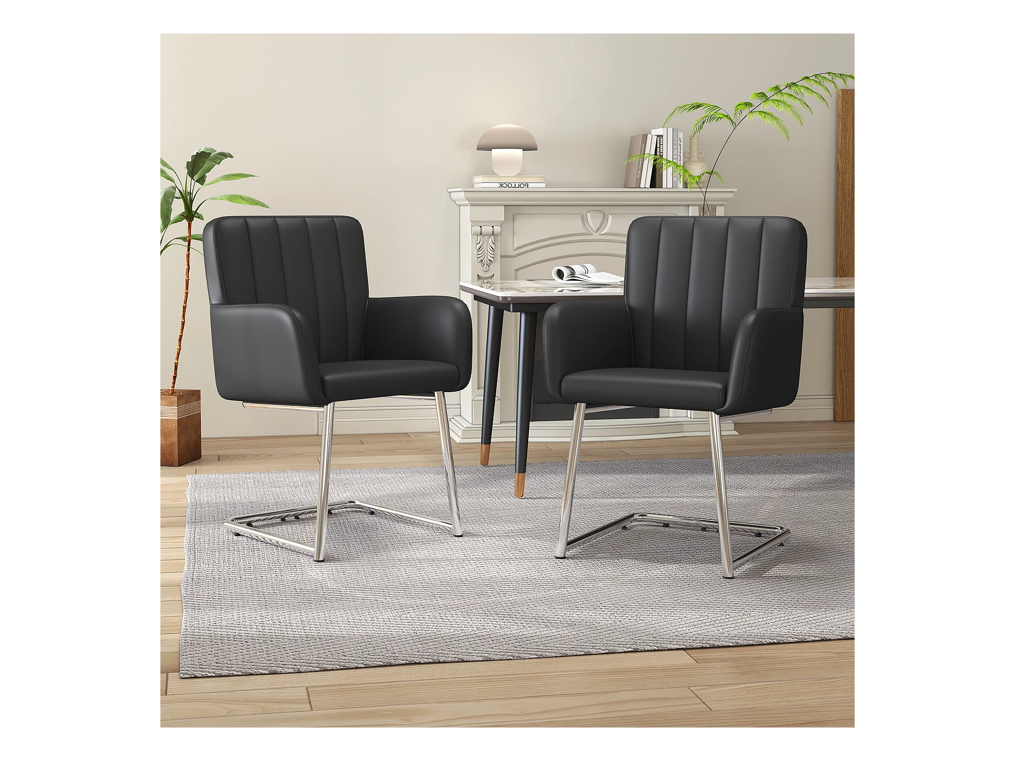 Chaise de Salle à Manger Noir en PU Simili Cuir avec Dossier Haut et Accoudoirs, Cadre en Métal Chromé, Set de 4 (Non Applicable)