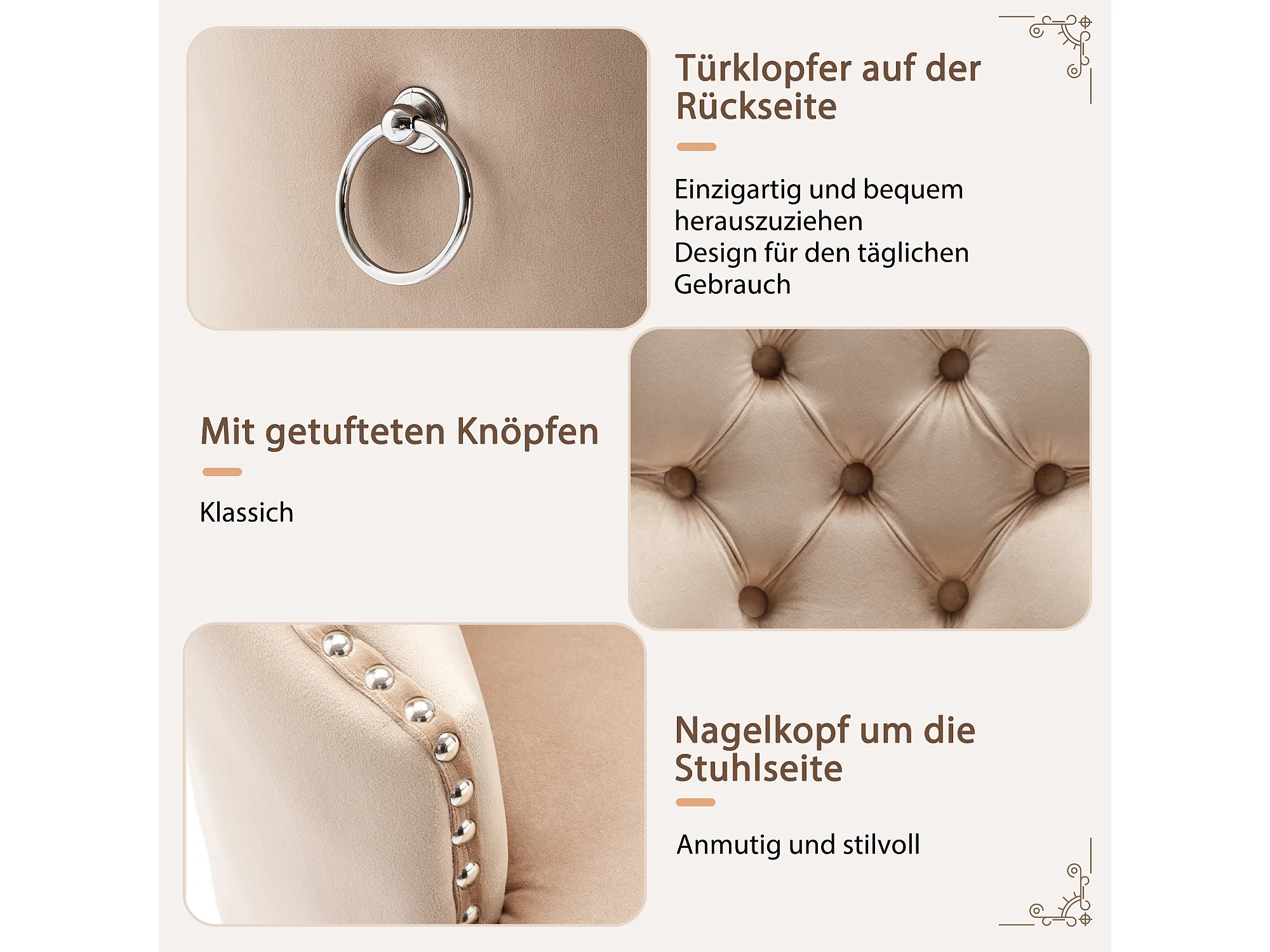 Set de 2 chaises de salle à manger, design vintage, clouté, pieds en bois massif, revêtement en velours, gris (53x46.5x95 cm)
