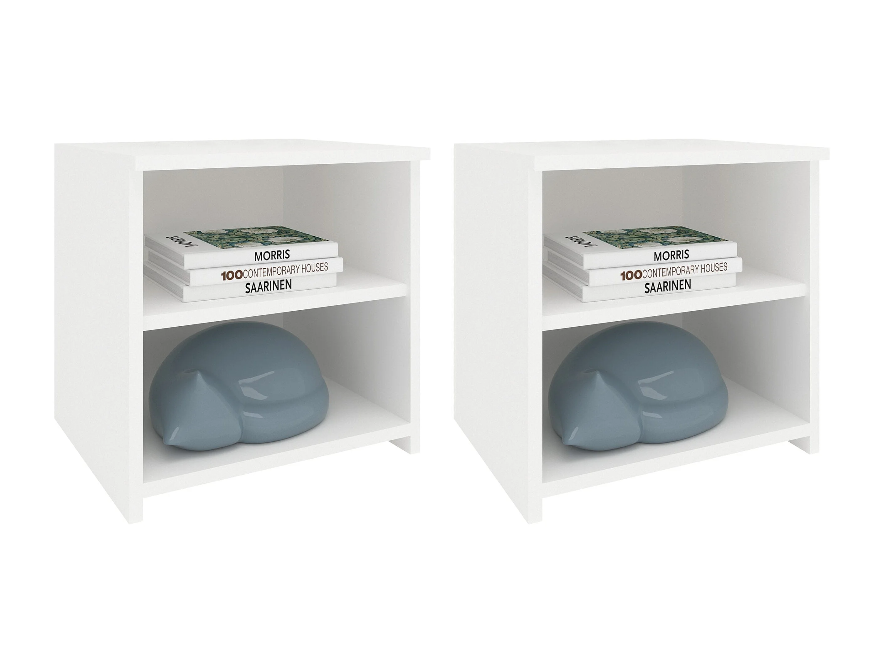 Set de 2 tables de chevet haaus Alma, 1 étagère, Blanc, 40 x 33 x 40 cm