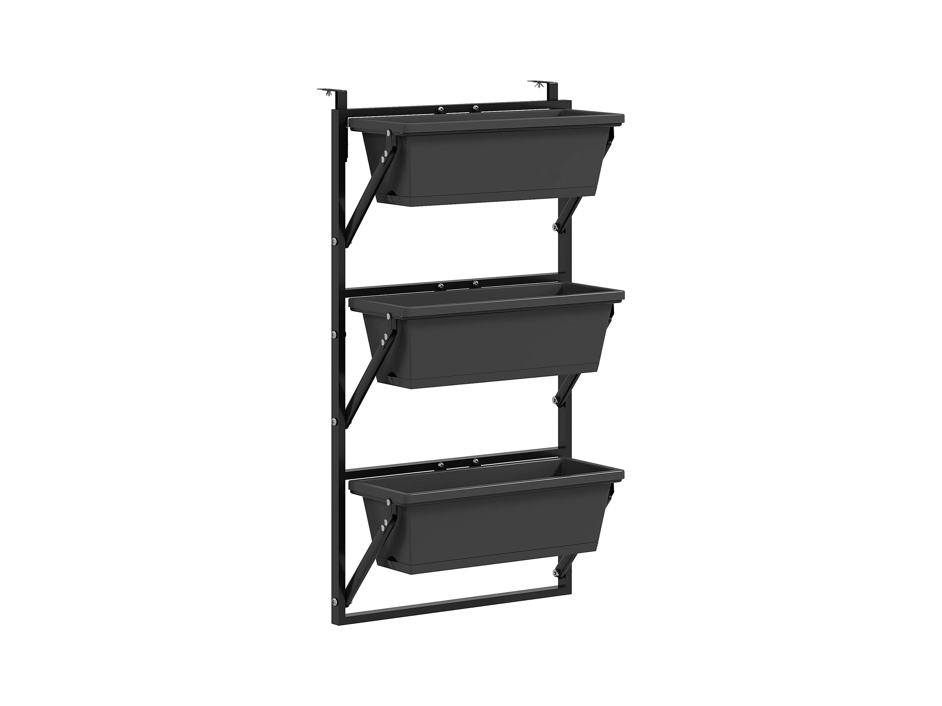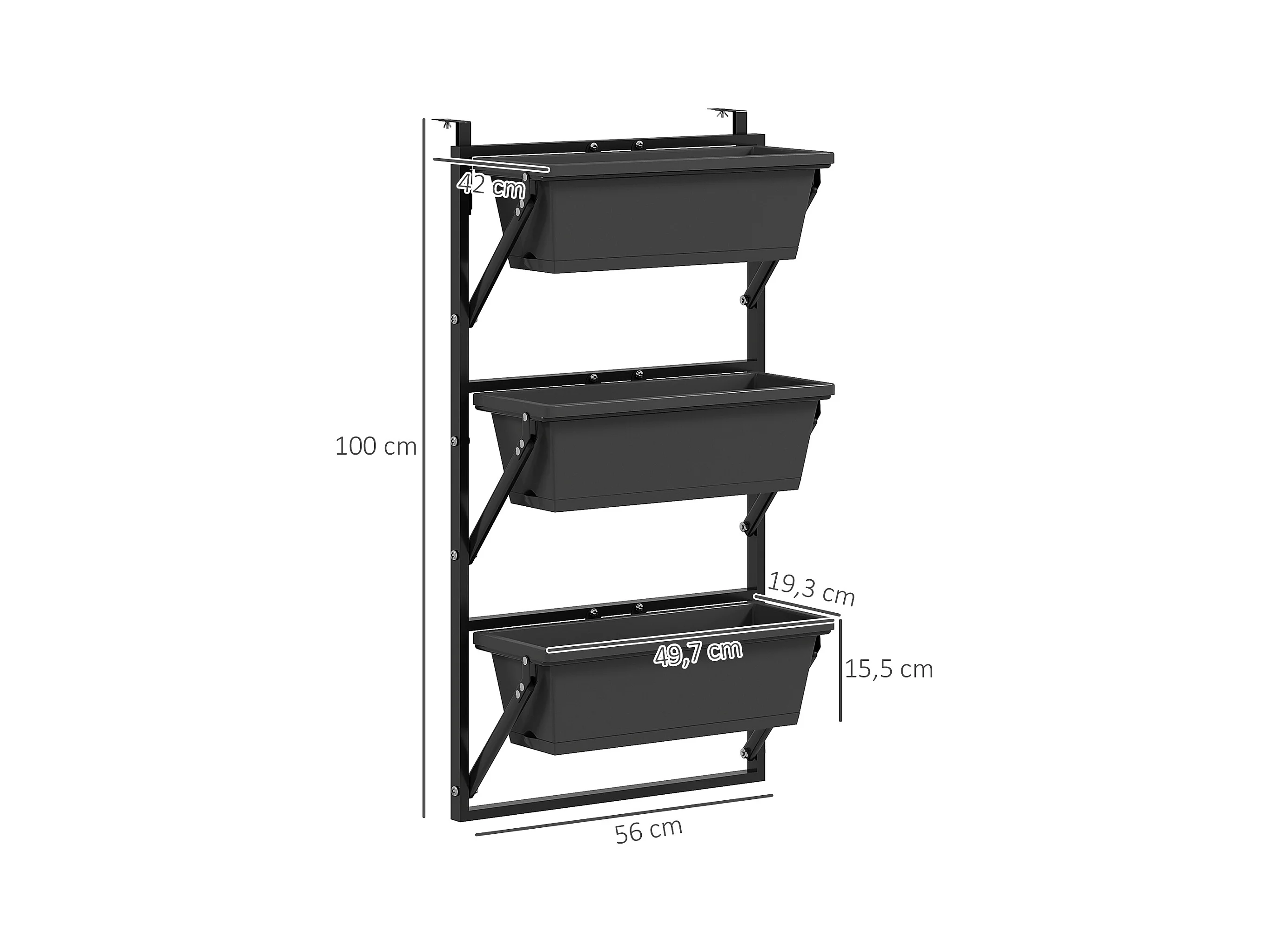 Set de 3 jardinières rectangulaires avec trous de drainage, plastique et acier, gris foncé (56x42x100cm)