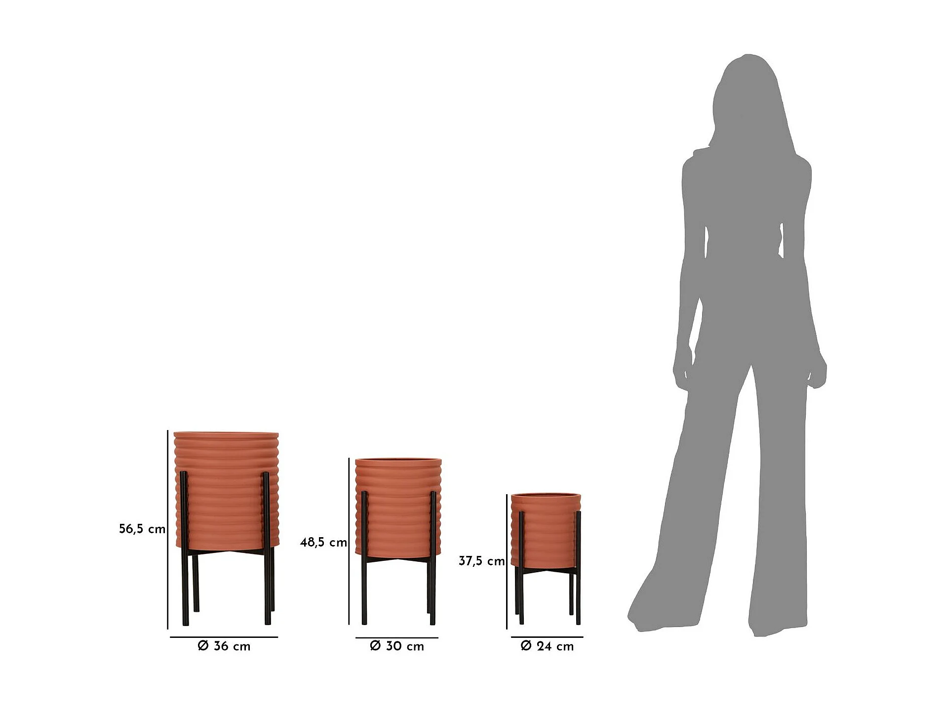 Lot de 3 Cache-Pots sur Pied "Milly" 56cm Brique