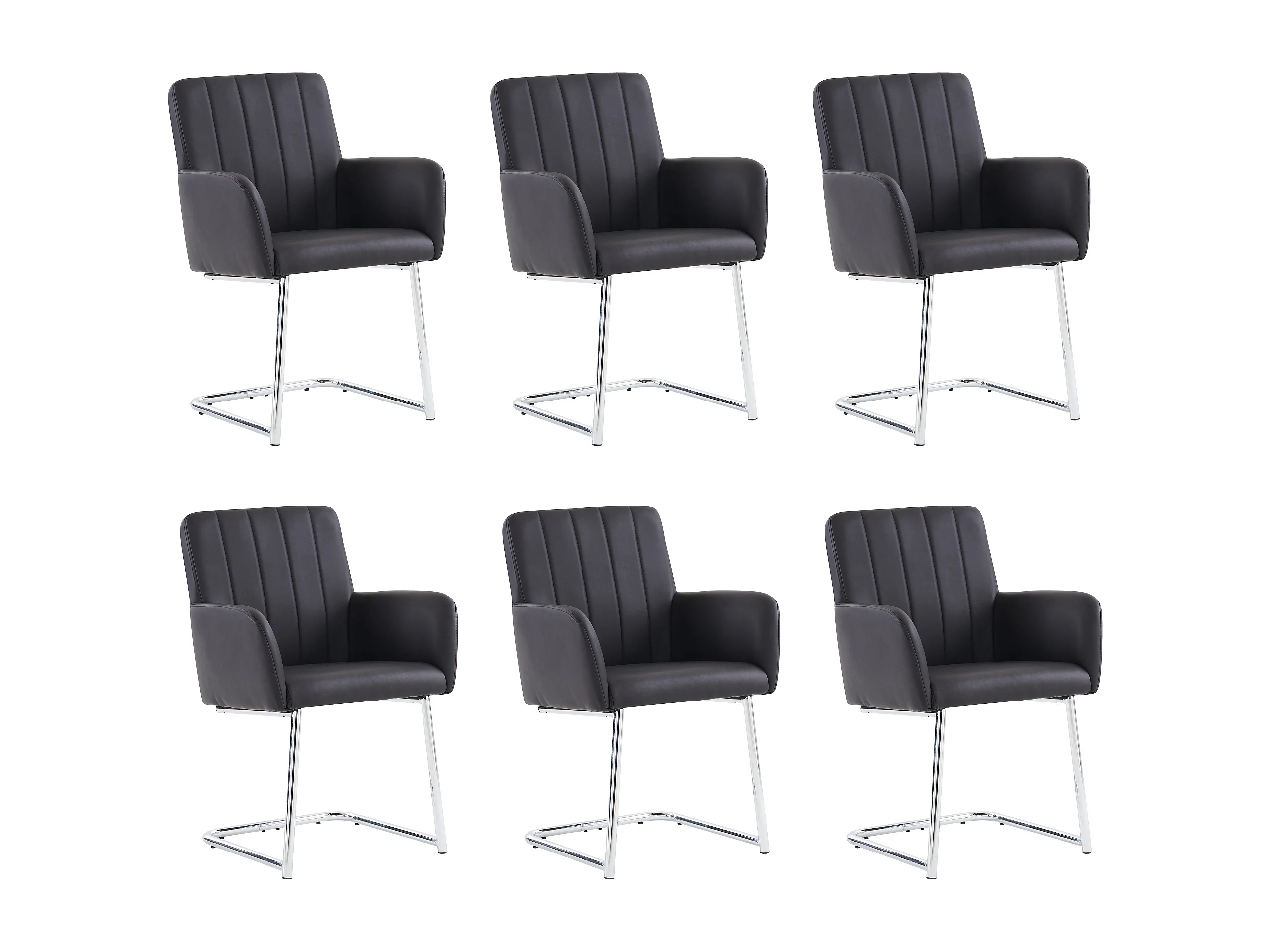 Set de 6 chaises de salle à manger avec rayures verticales, fauteuil rembourré avec pieds métalliques en forme de Z, cuir PU, noir