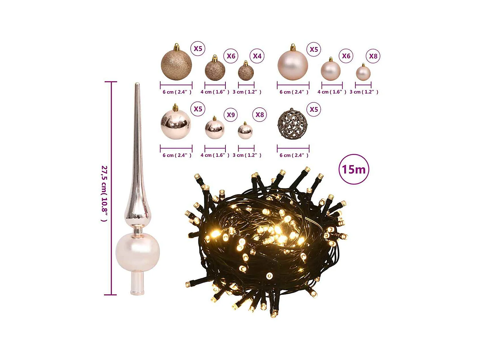 Set de boules de Noël avec pic et 150 LED 61 pcs Doré rose