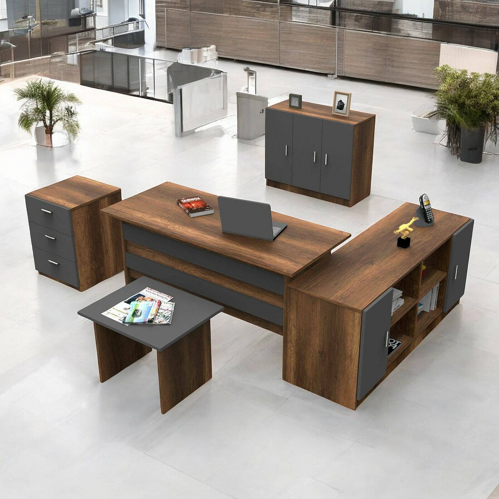 Set de bureau Djaroszynsk, Composition du studio, Kit de bureau, Ensemble de bureau et de tiroirs, Noyer et Anthracite