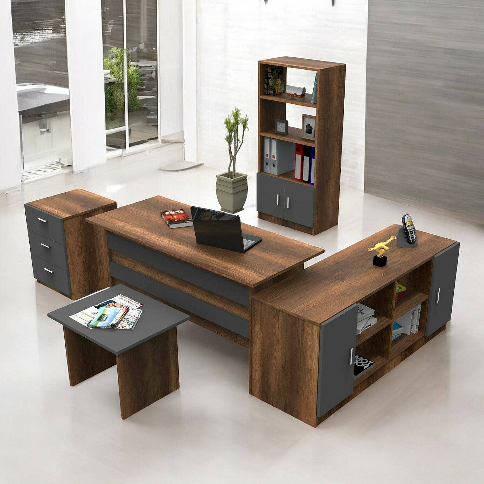 Set de bureau Djaroszynsk, Composition du studio, Kit de bureau, Ensemble de bureau et de tiroirs, Noyer et Anthracite