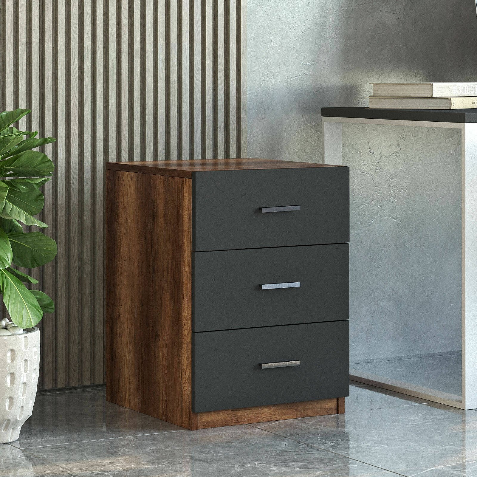 Set de bureau Drasmusse, Composition du studio, Kit de bureau, Ensemble de bureau et de tiroirs, Noyer et Anthracite