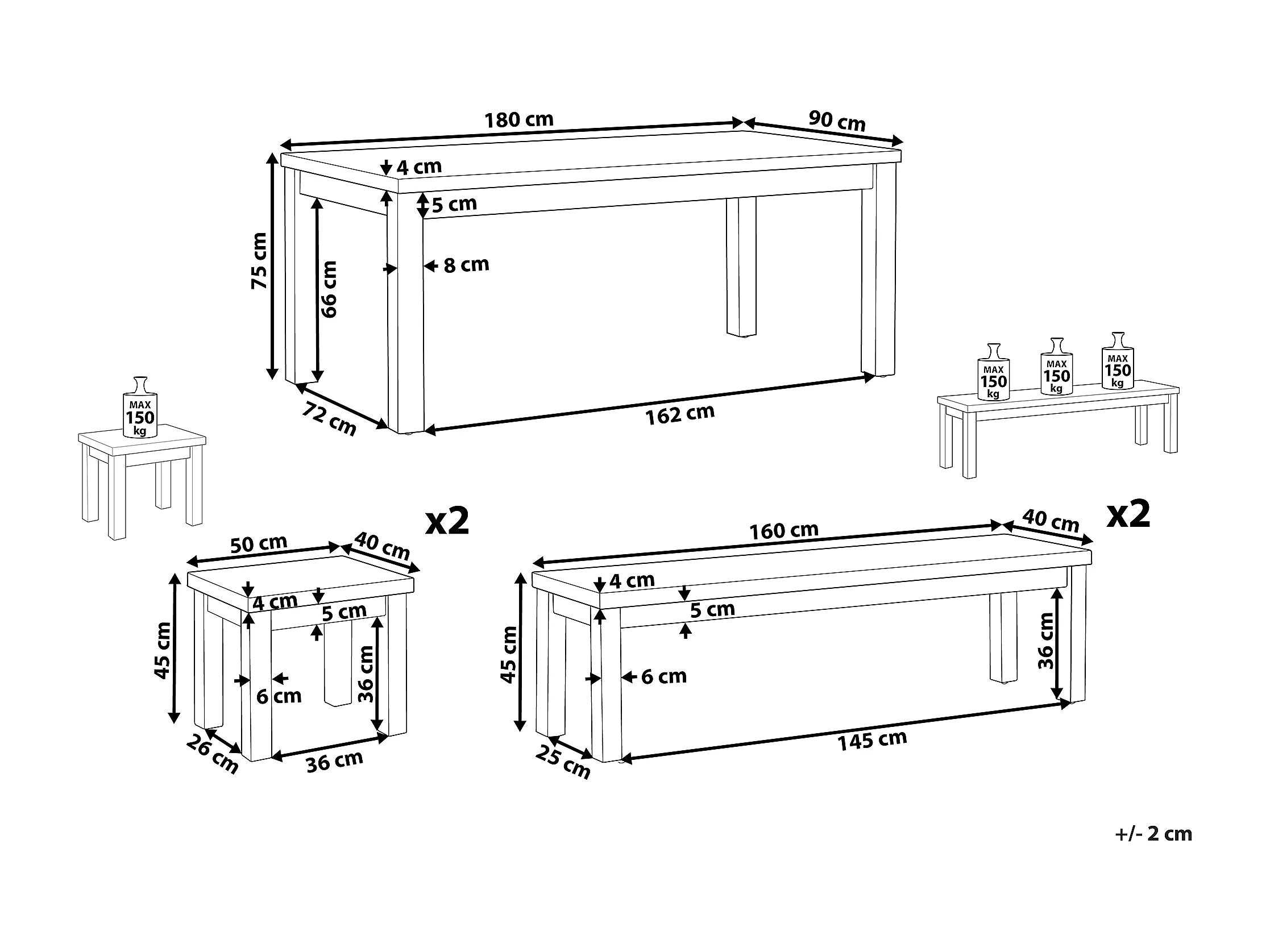 Salle à manger de jardin avec bancs et tabourets 8 places OSTUNI Béton Gris