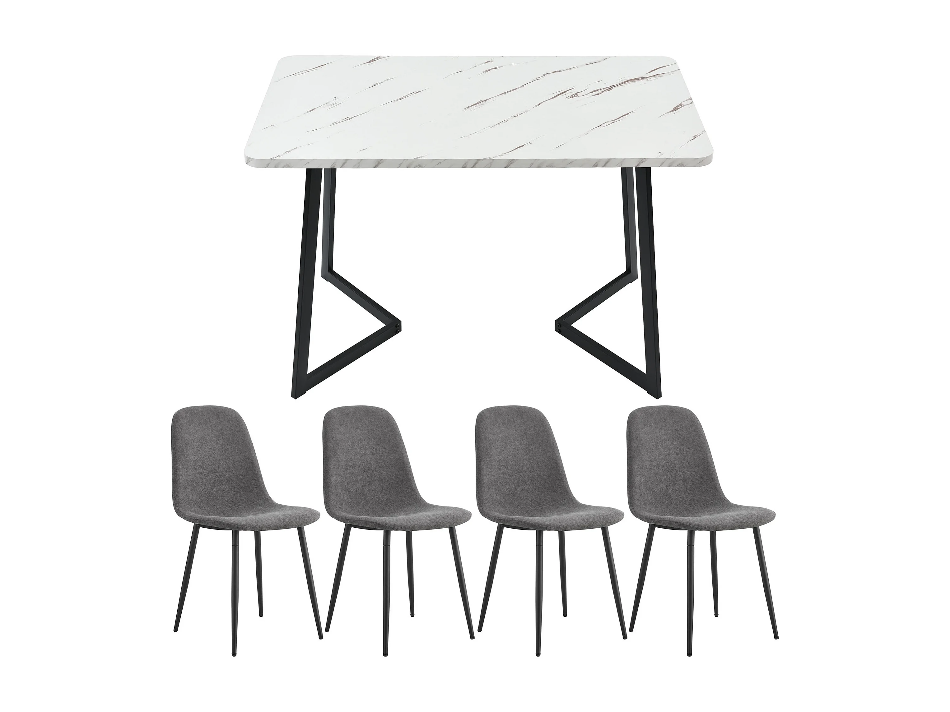 Set de salle à manger (5 pièces), table moderne avec 4 chaises, tissu en lin gris, pieds métalliques noirs (117x68x75 cm)
