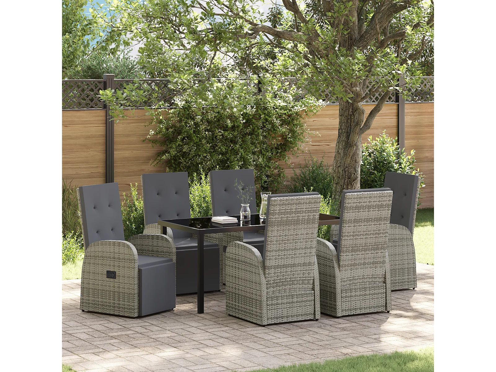 Set de salle à manger de jardin 7 pièces avec coussins Gris Résine PE