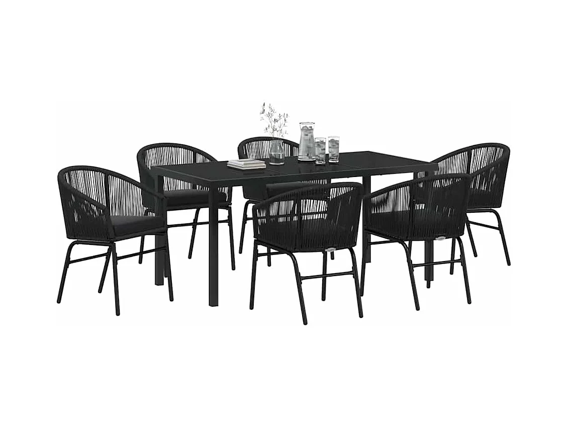 Ensemble de salle à manger de jardin de 7 pièces avec coussins en rattan poly noir